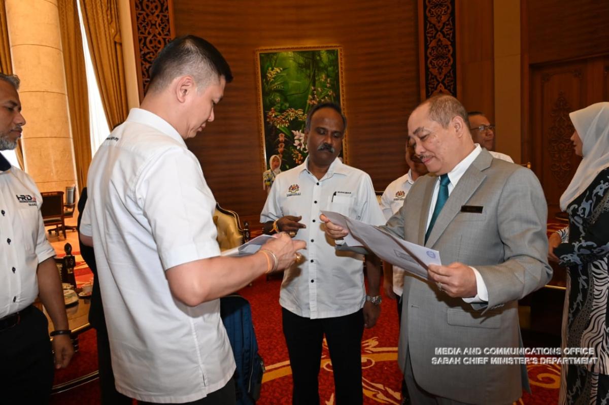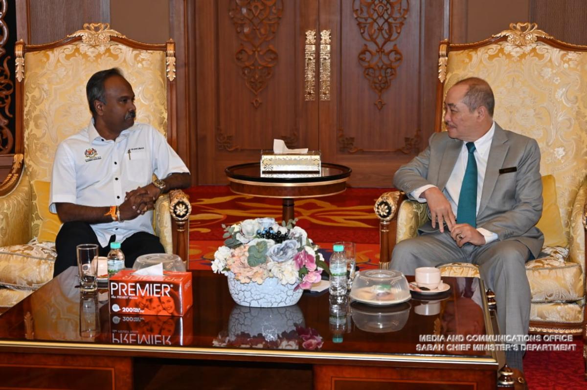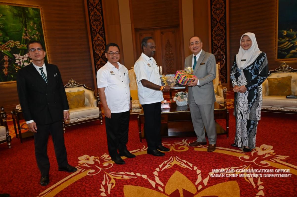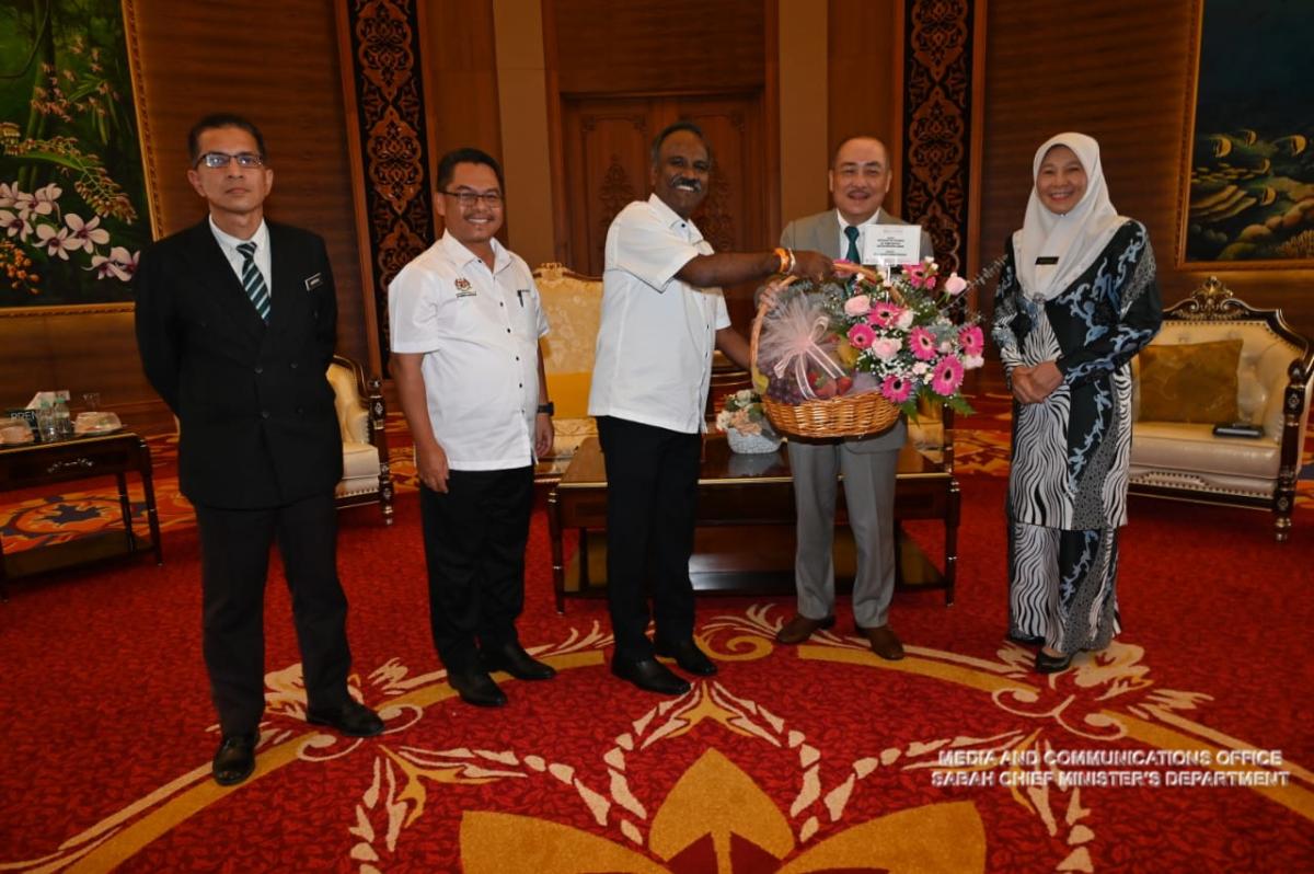Yang Amat Berhormat Ketua Menteri menerima Kunjungan Hormat daripada Menteri Sumber Manusia, Yang Berhormat Tuan V. Sivakumar, di Menara Kinabalu