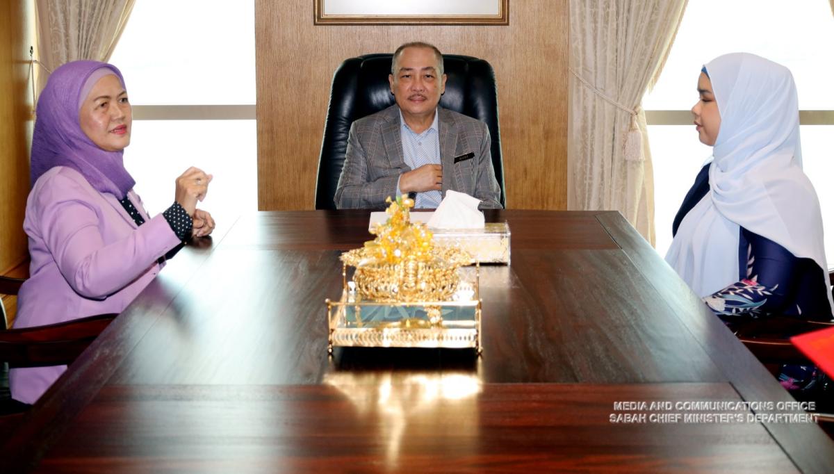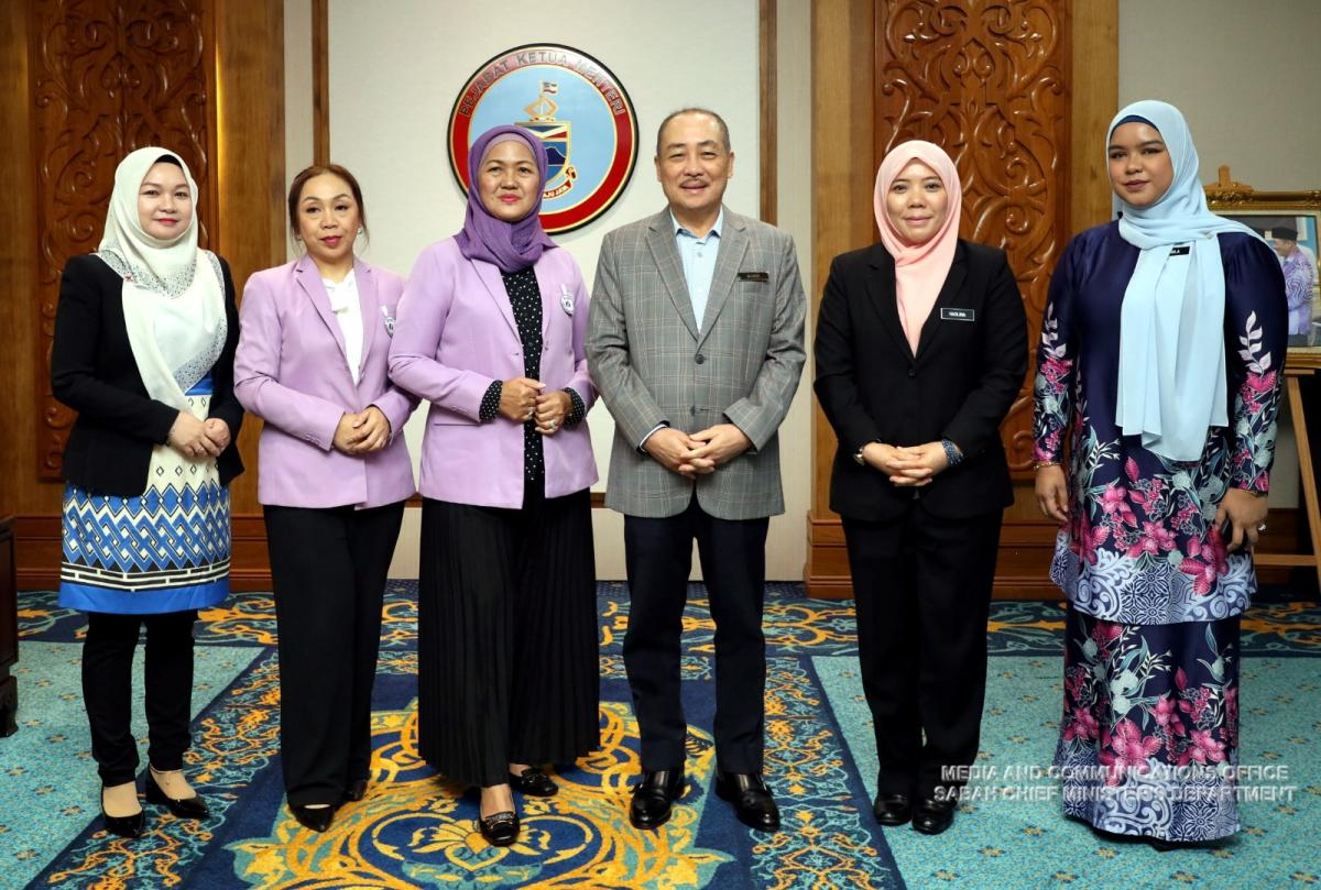 Yang Amat Berhormat Ketua Menteri menerima Kunjungan Hormat daripada Urusetia Sambutan Hari Wanita Peringkat Negeri Sabah di Pejabat Ketua Menteri Menara Kinabalu