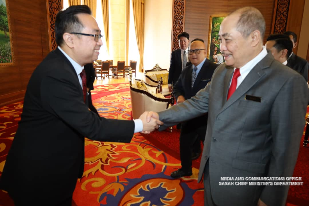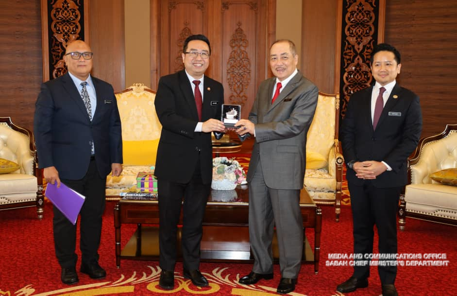 Yang Amat Berhormat Ketua Menteri menerima Kunjungan Hormat daripada Menteri Sains, Teknologi Dan Inovasi (MOSTI), Yang Berhormat Chang Lih Kang di Menara Kinabalu