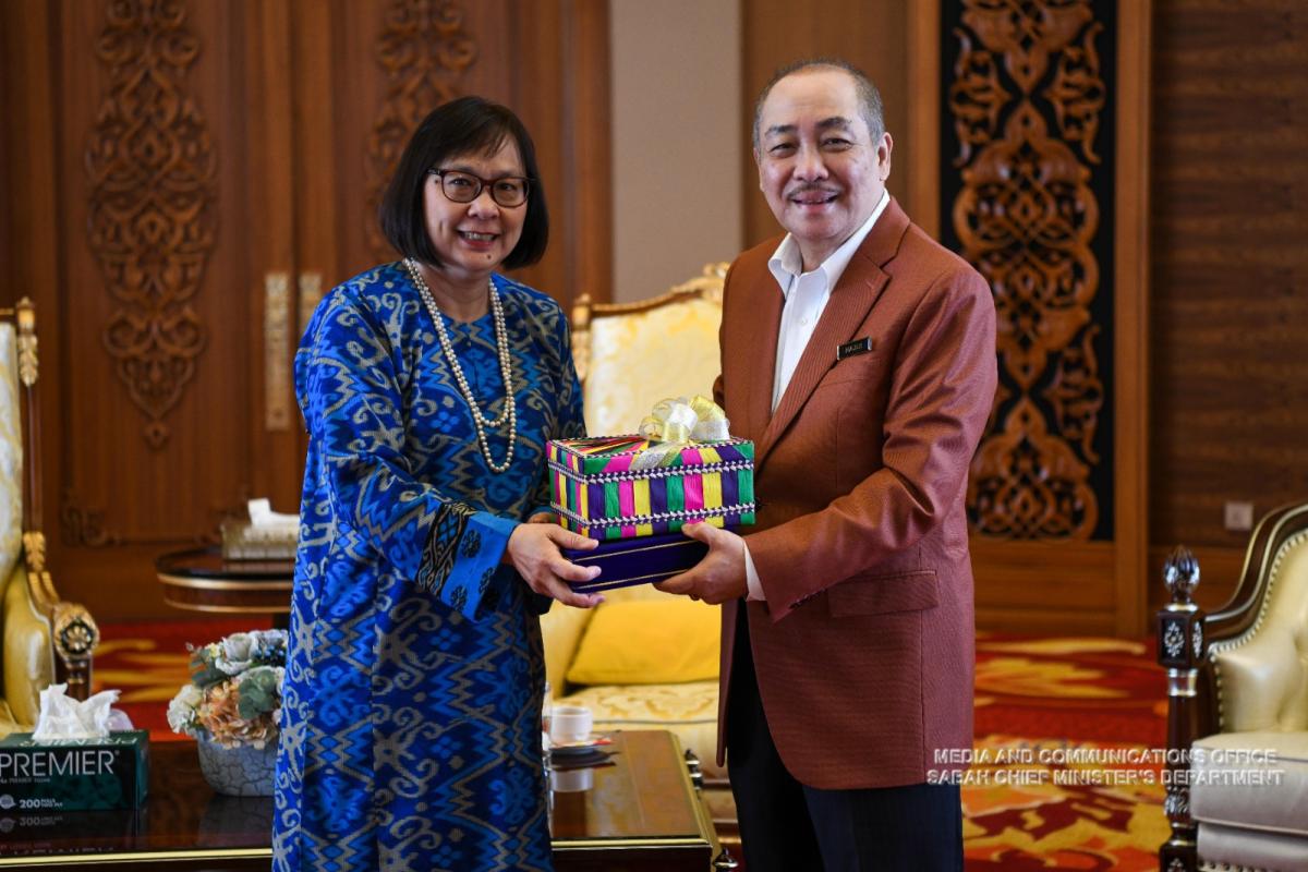 Yang Amat Berhormat Ketua Menteri menerima Kunjungan Hormat daripada Pengurus Besar Petron Malaysia, Puan Faridah Ali di Menara Kinabalu