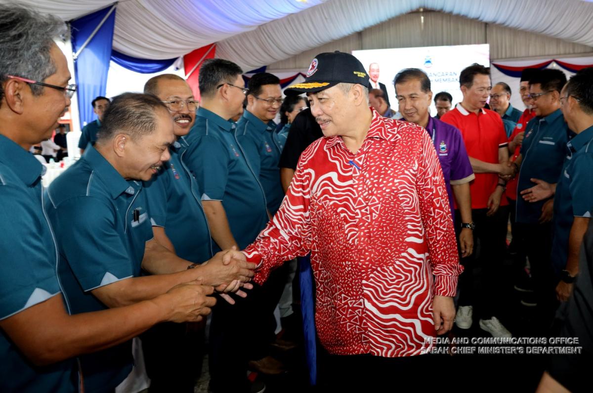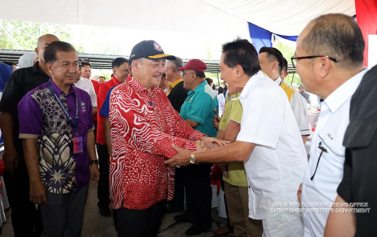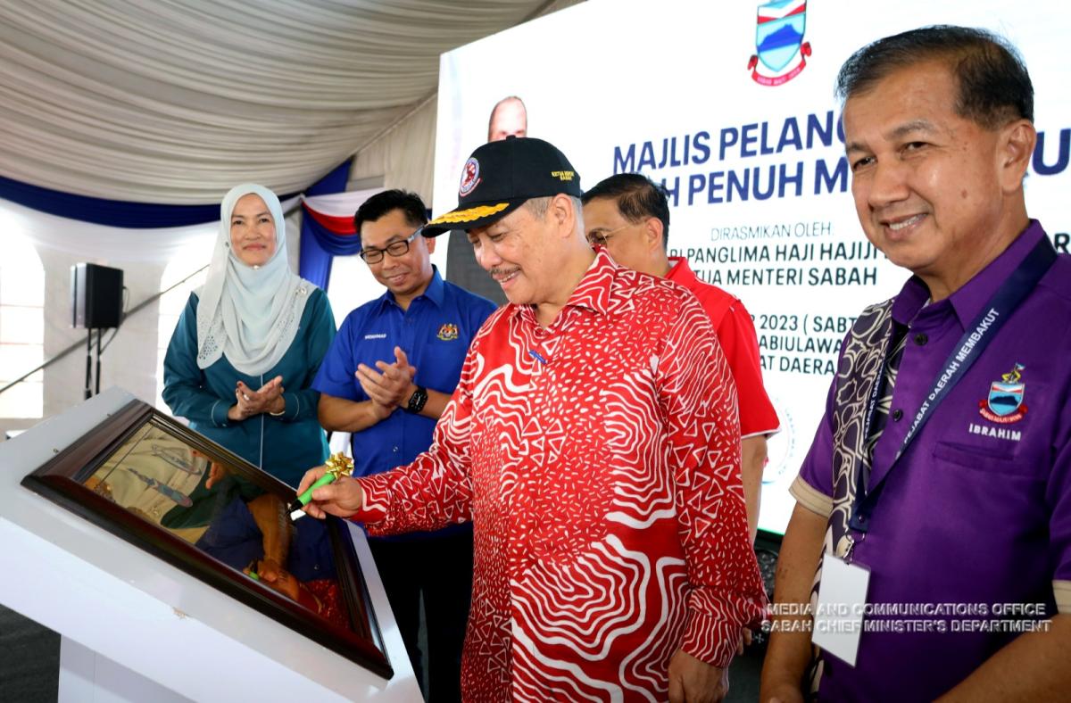 Yang Amat Berhormat Ketua Menteri Datuk Seri Panglima Haji Hajiji bin Haji Noor Merasmikan Majlis Perasmian Daerah Penuh Membakut di Perkarangan Pejabat Daerah Membakut