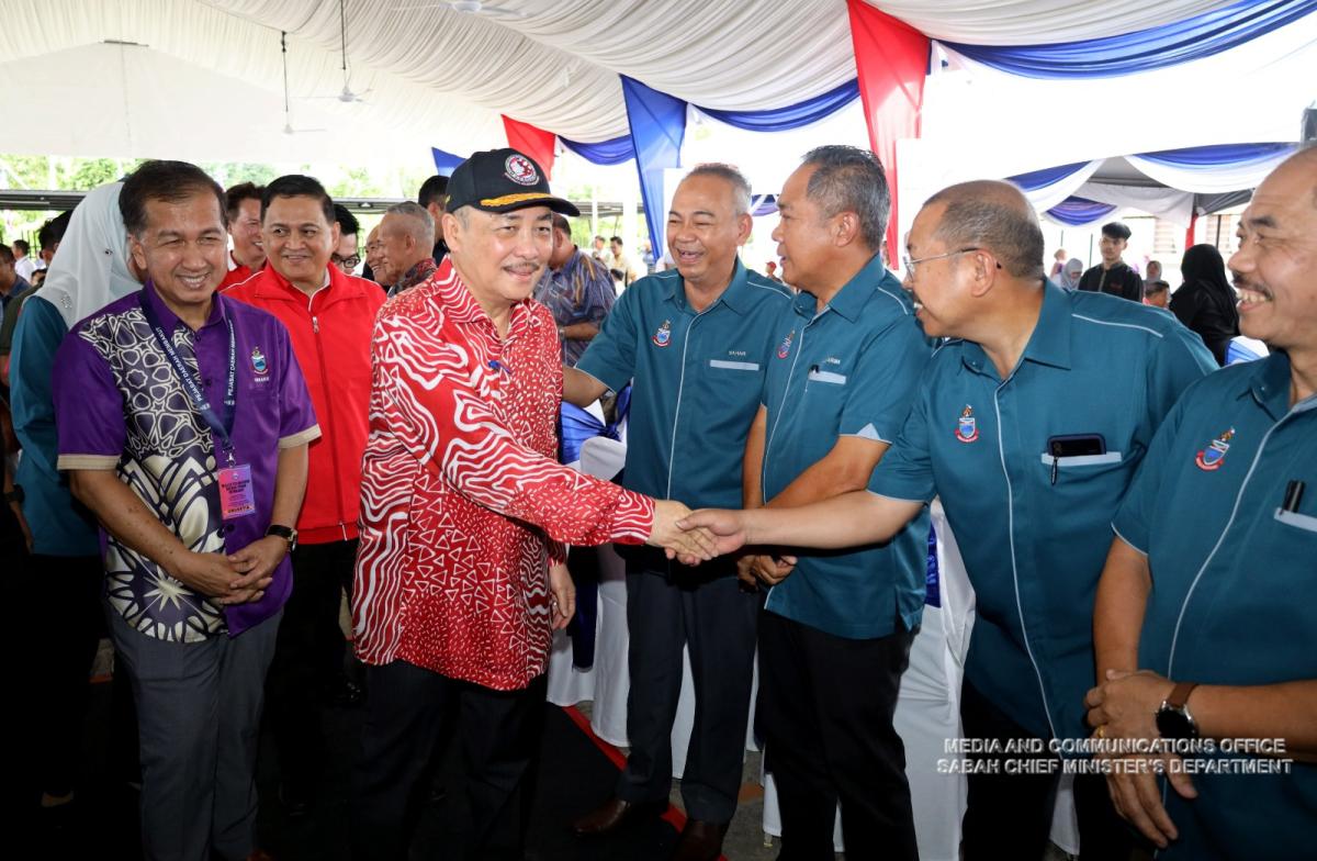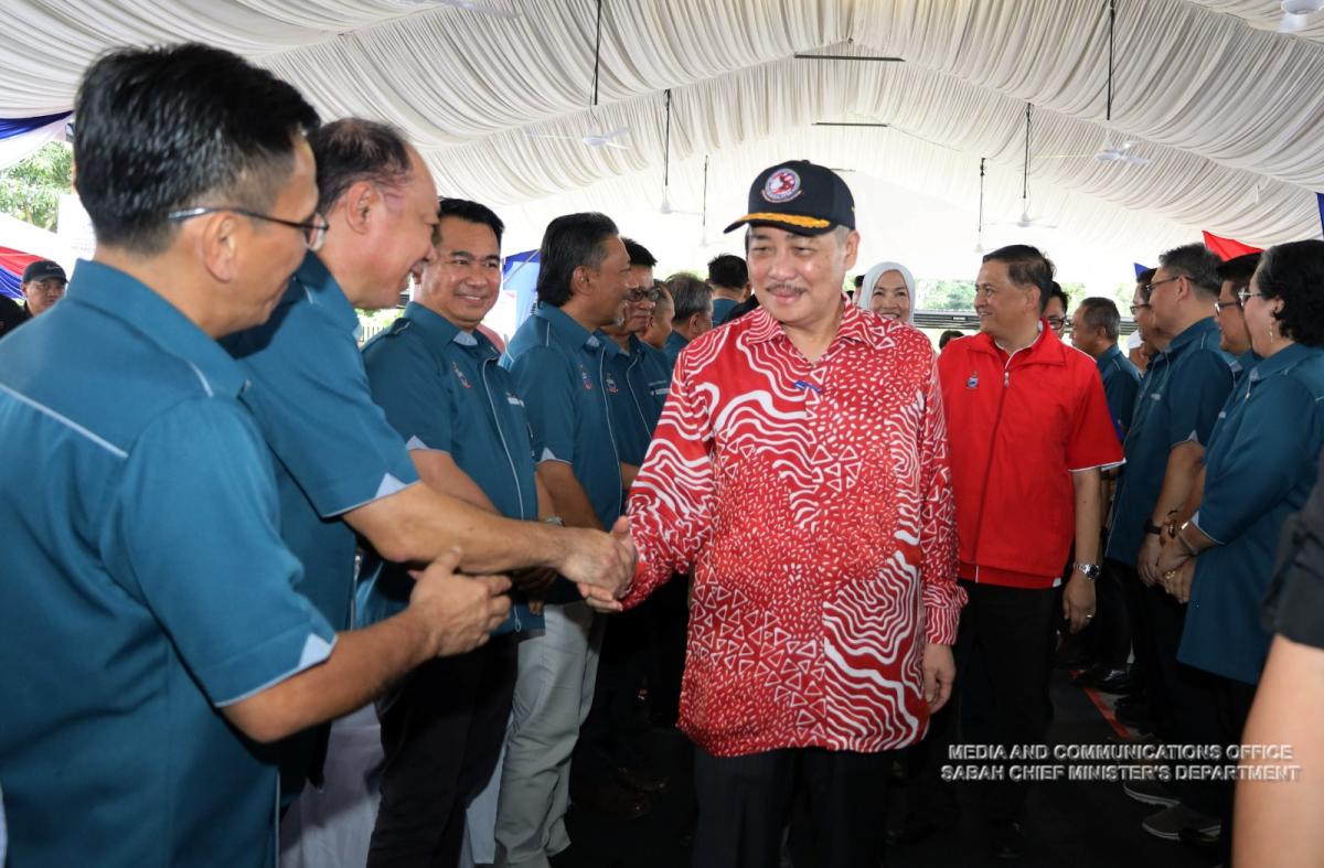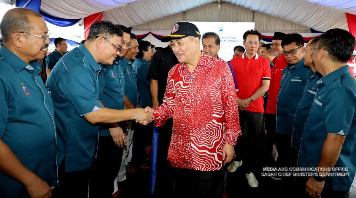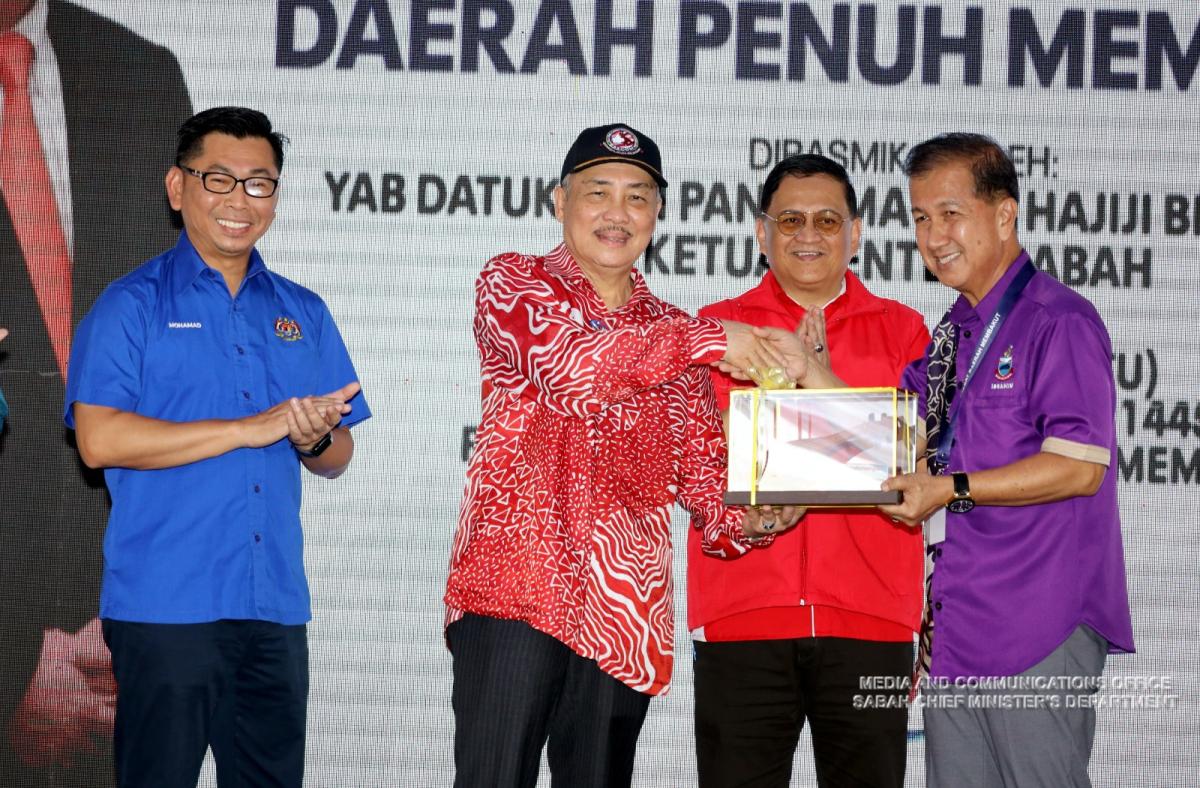 Yang Amat Berhormat Ketua Menteri Datuk Seri Panglima Haji Hajiji bin Haji Noor Merasmikan Majlis Perasmian Daerah Penuh Membakut di Perkarangan Pejabat Daerah Membakut