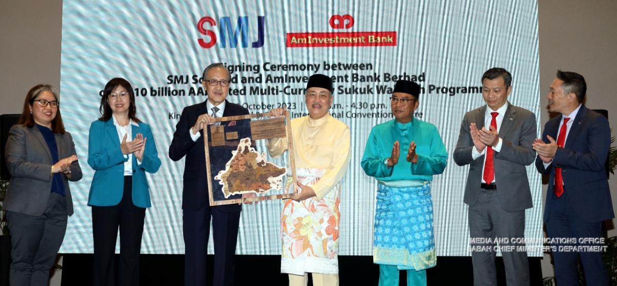 Yang Amat Berhormat Ketua Menteri Menyaksikan Majlis Menandatangani Program Sukuk Wakalah Berbilang Mata Wang Bernilai RM10 Bilion SMJ Sdn Bhd dengan AmInvestment Bank Berhad di Pusat Konvensyen Antarabangsa Sabah (SICC)