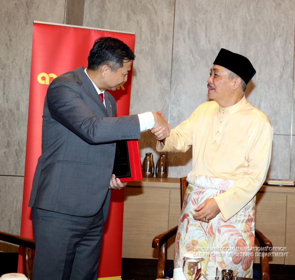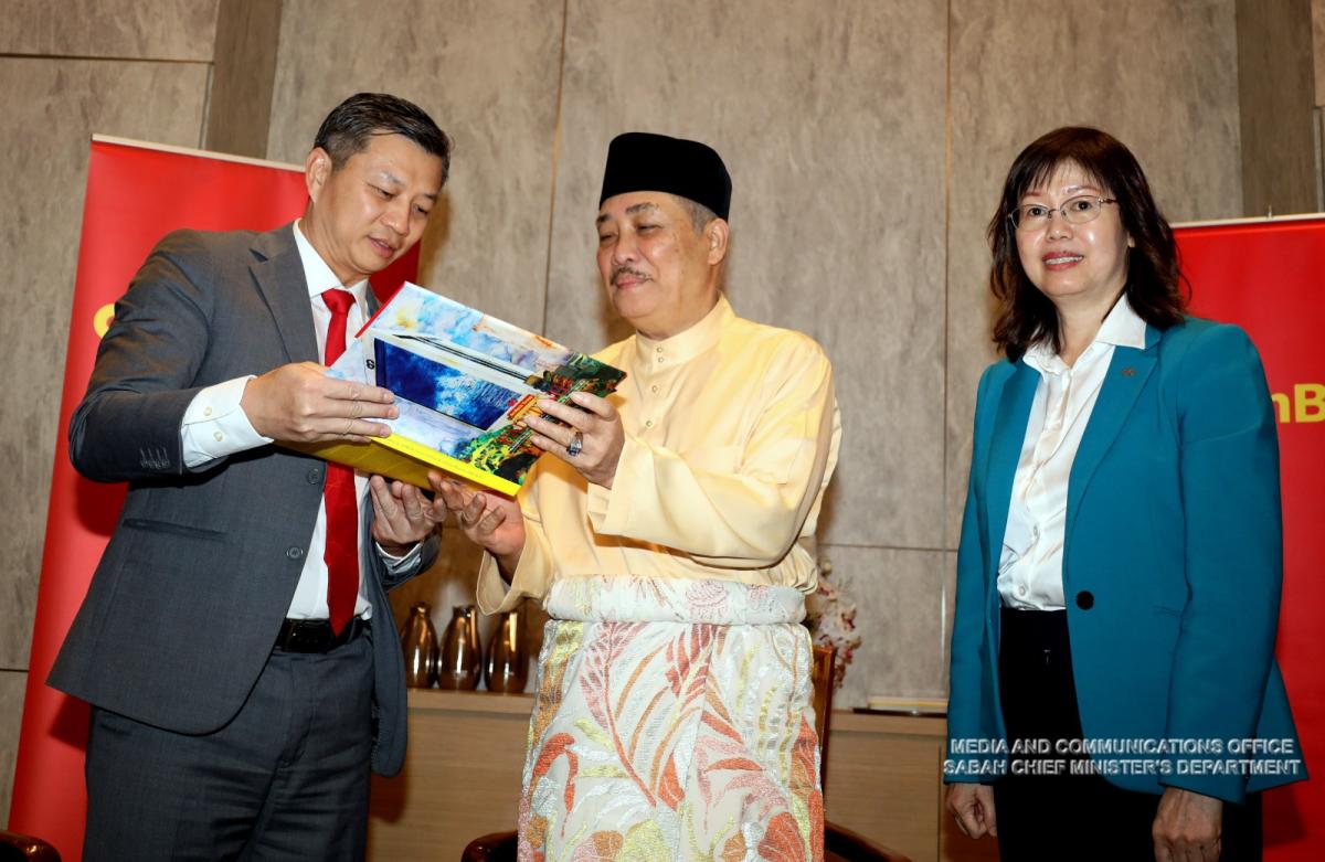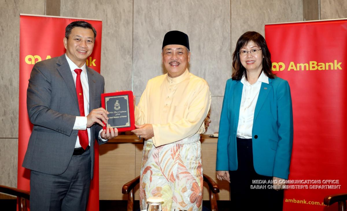 Yang Amat Berhormat Ketua Menteri menerima Kunjungan Hormat daripada MDCEO AmInvestment Bank, Cik Tracy Chen, dan Pengarah Urusan Ambank Business Bank , Christopher Yap di Pusat Konvensyen Antarabangsa Sabah (SICC)