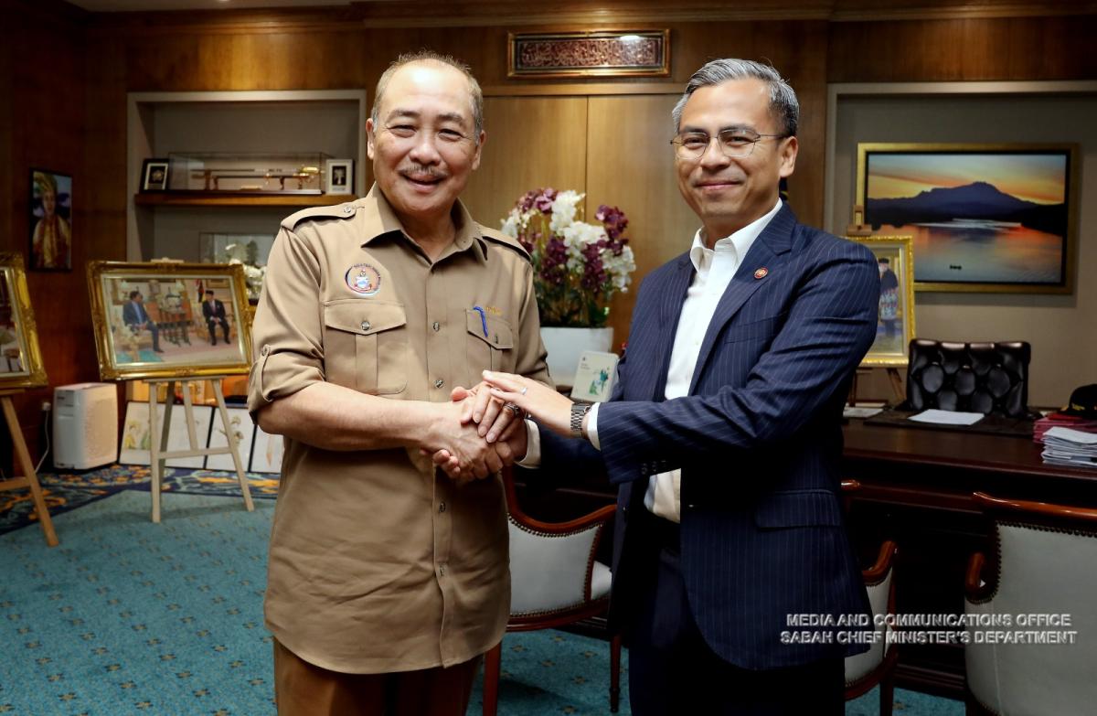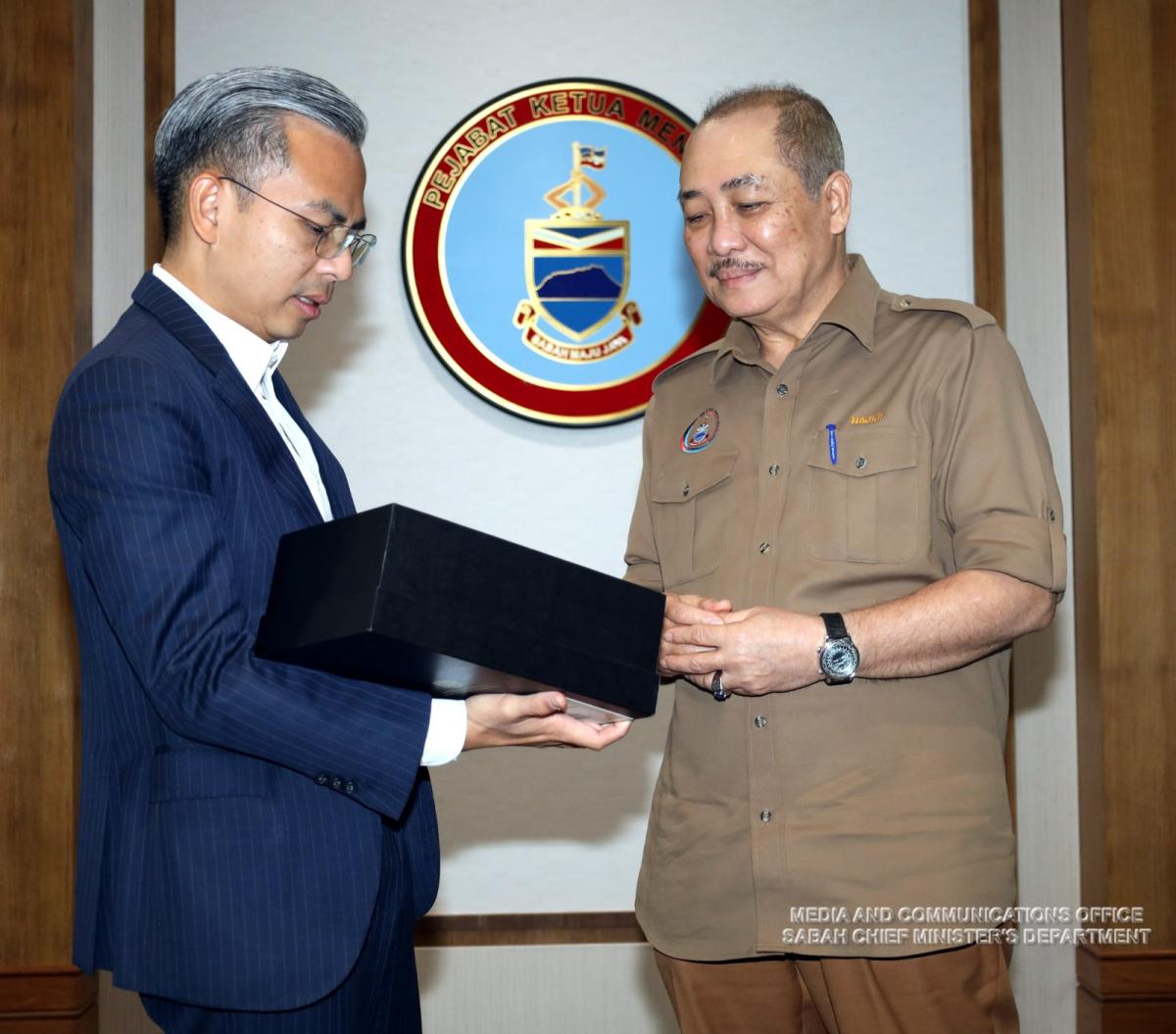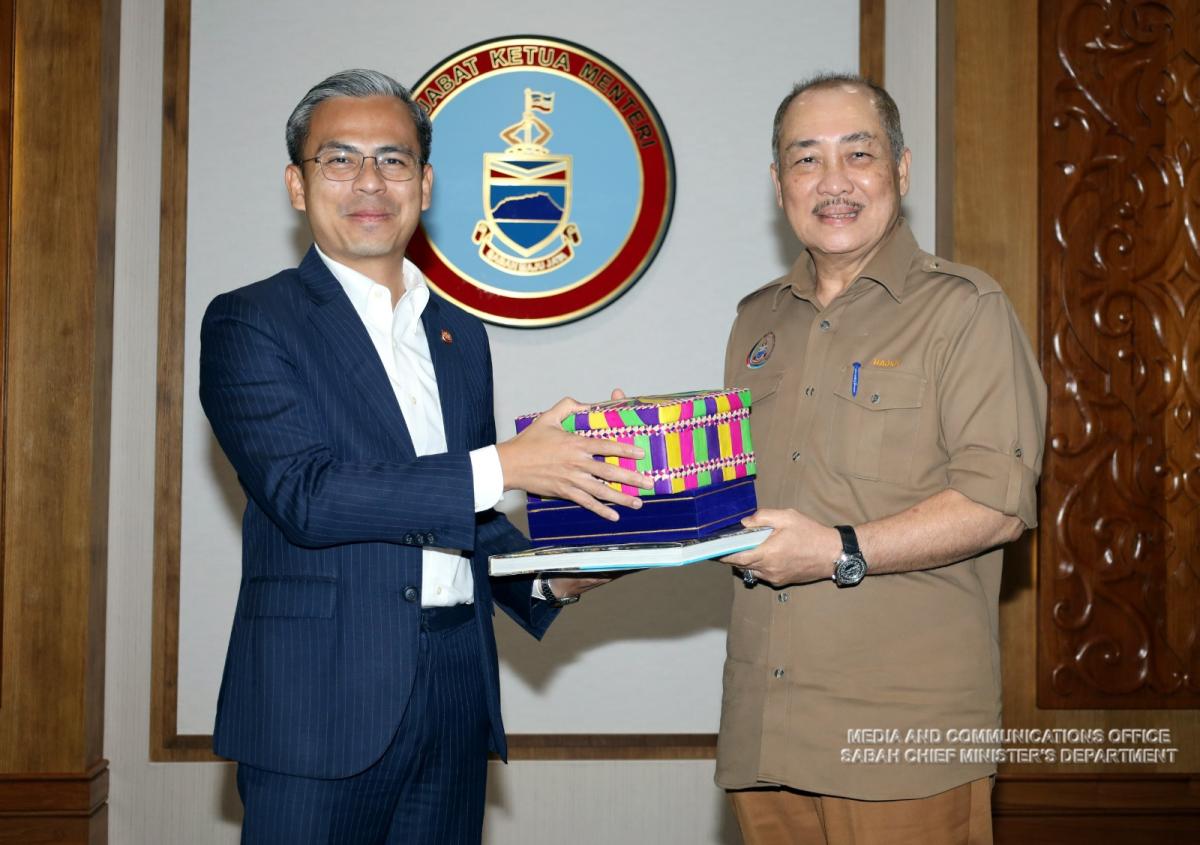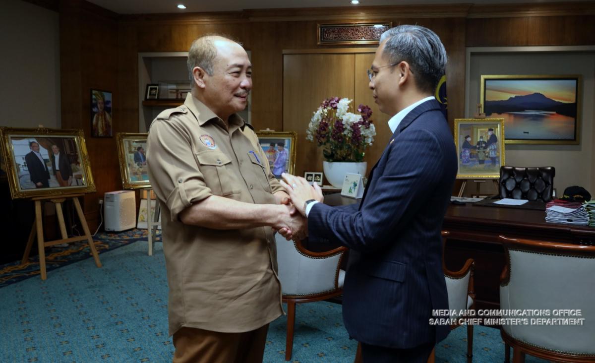 Yang Amat Berhormat Ketua Menteri menerima Kunjungan Hormat daripada Menteri Komunikasi dan Digital Malaysia, Tuan Fahmi Fadzil di Pejabat Ketua Menteri, Menara Kinabalu