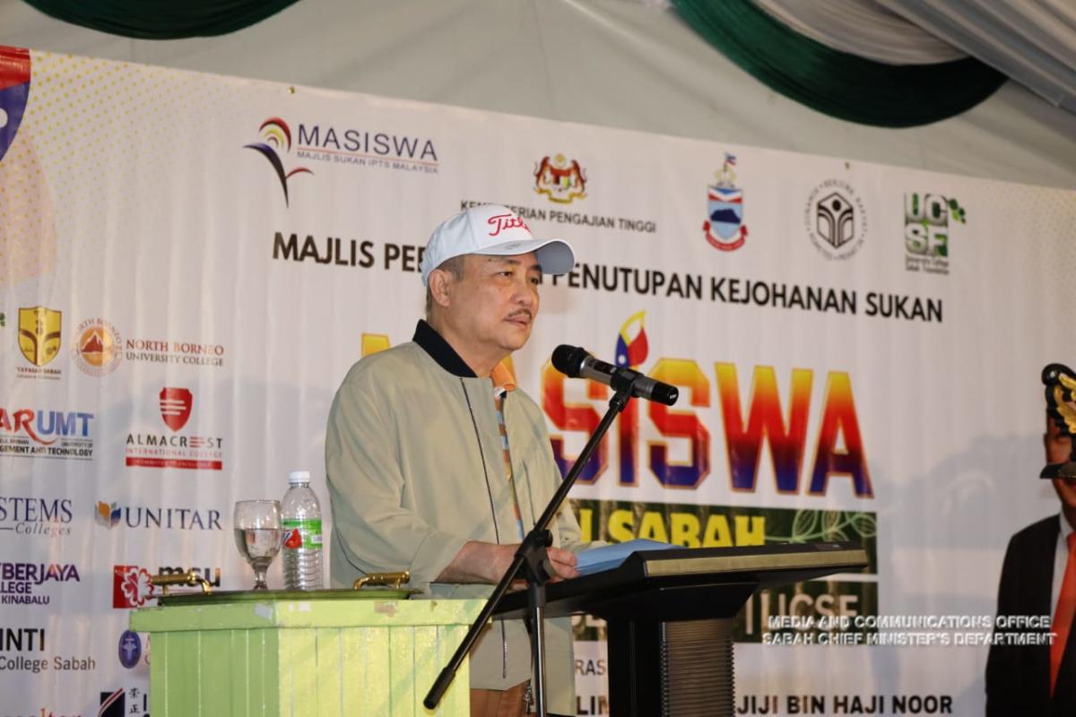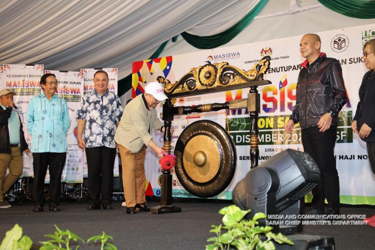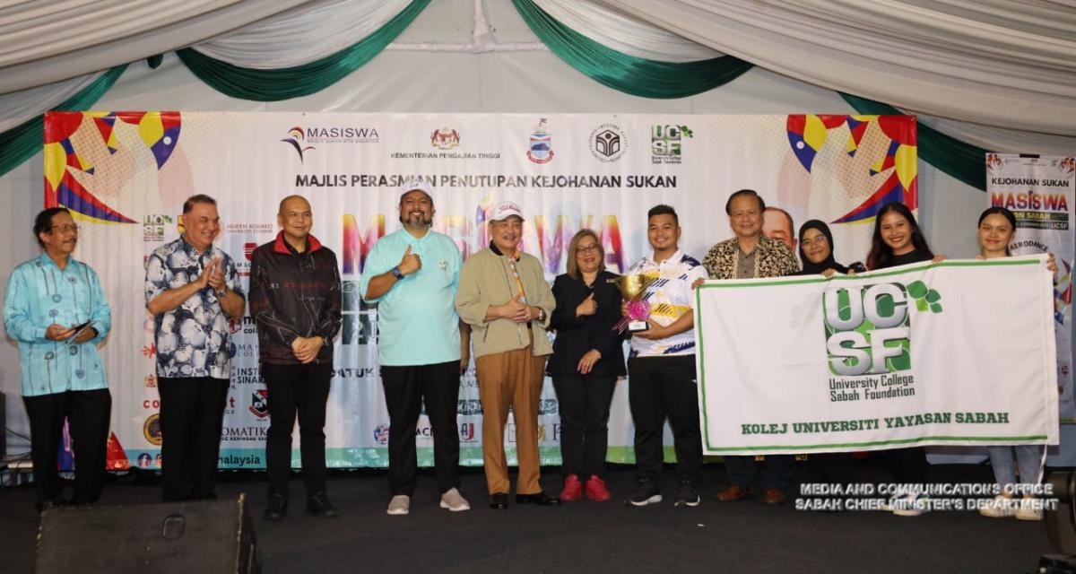 Yang Amat Berhormat Ketua Menteri Merasmikan Majlis Perasmian Penutupan Kejohanan Sukan Masiswa Zon Sabah 2023 di Kolej Universiti Yayasan Sabah (UCSF)