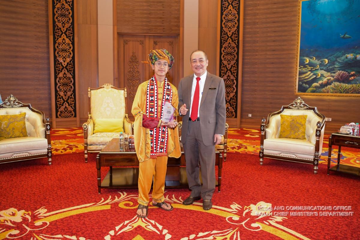 Yang Amat Berhormat Ketua Menteri menerima Kunjungan Hormat daripada Pemenang Anugerah Gemilang Kebudayaan dan Seni Kebangsaan 2023, Ahmad Mikhail Damsal bin Abdul Hakim di Menara Kinabalu