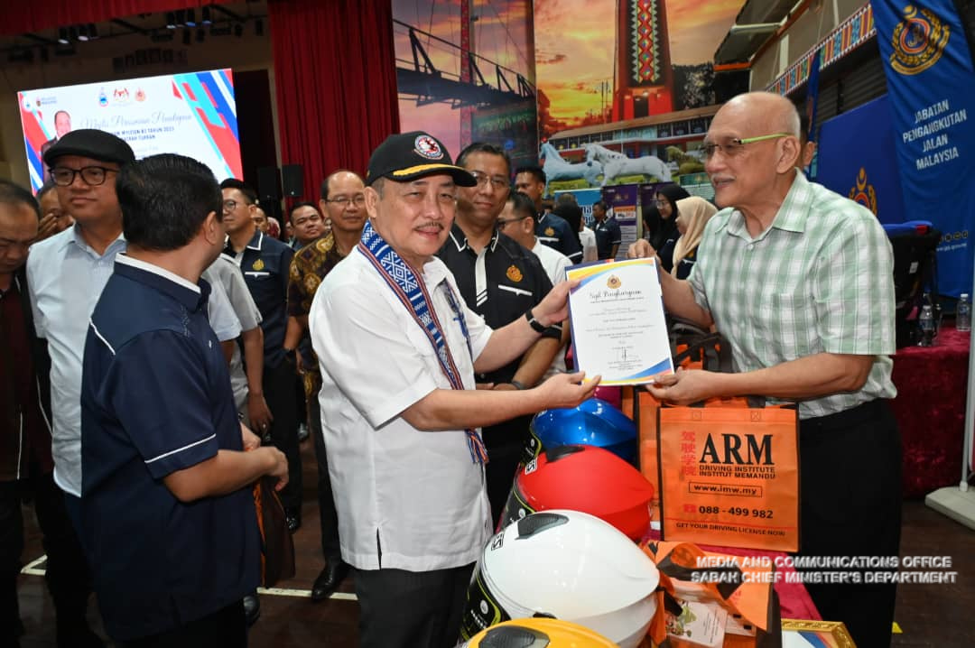 Yang Amat Berhormat Ketua Menteri Merasmikan Majlis Penutupan Program MyLesen B2 Tahun 2023 Daerah Tuaran di Dewan Seri Sulaman, Tuaran