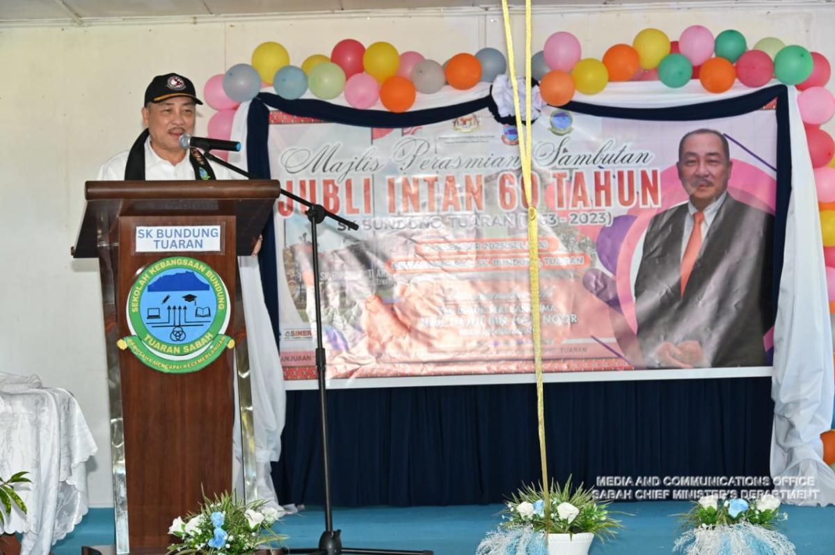 Yang Amat Berhormat Ketua Menteri Merasmikan Majlis Sambutan Jubli Intan (1963-2023) Sekolah Kebangsaan (SK) Bundung Tuaran di Dewan Muhibbah, SK Bundung, Tuaran