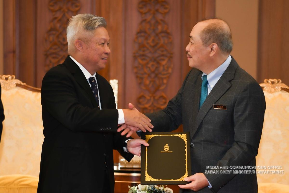 Yang Amat Berhormat Ketua Menteri Menyampaikan Watikah Mayor Kota Kinabalu di Pejabat Ketua Menteri, Menara Kinabalu.