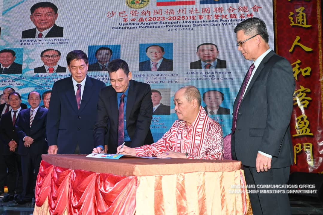 Yang Amat Berhormat Ketua Menteri Menerima Jemputan Sebagai Tetamu Kehormat Makan Malam Sempena Perayaan Tahun Baru Cina 2024 dan Majlis Angkat Sumpah Ahli-Ahli Jawatankuas Kepimpinan (2023-2025) Penggal Ke- 4 Gabungan Persatuan-Persatuan Foochow Sabah dan W.P. Labuan, Dewan Port View Palace, Wisma Hakka Sabah, Jalan Tanjung Lipat, Kota Kinabalu