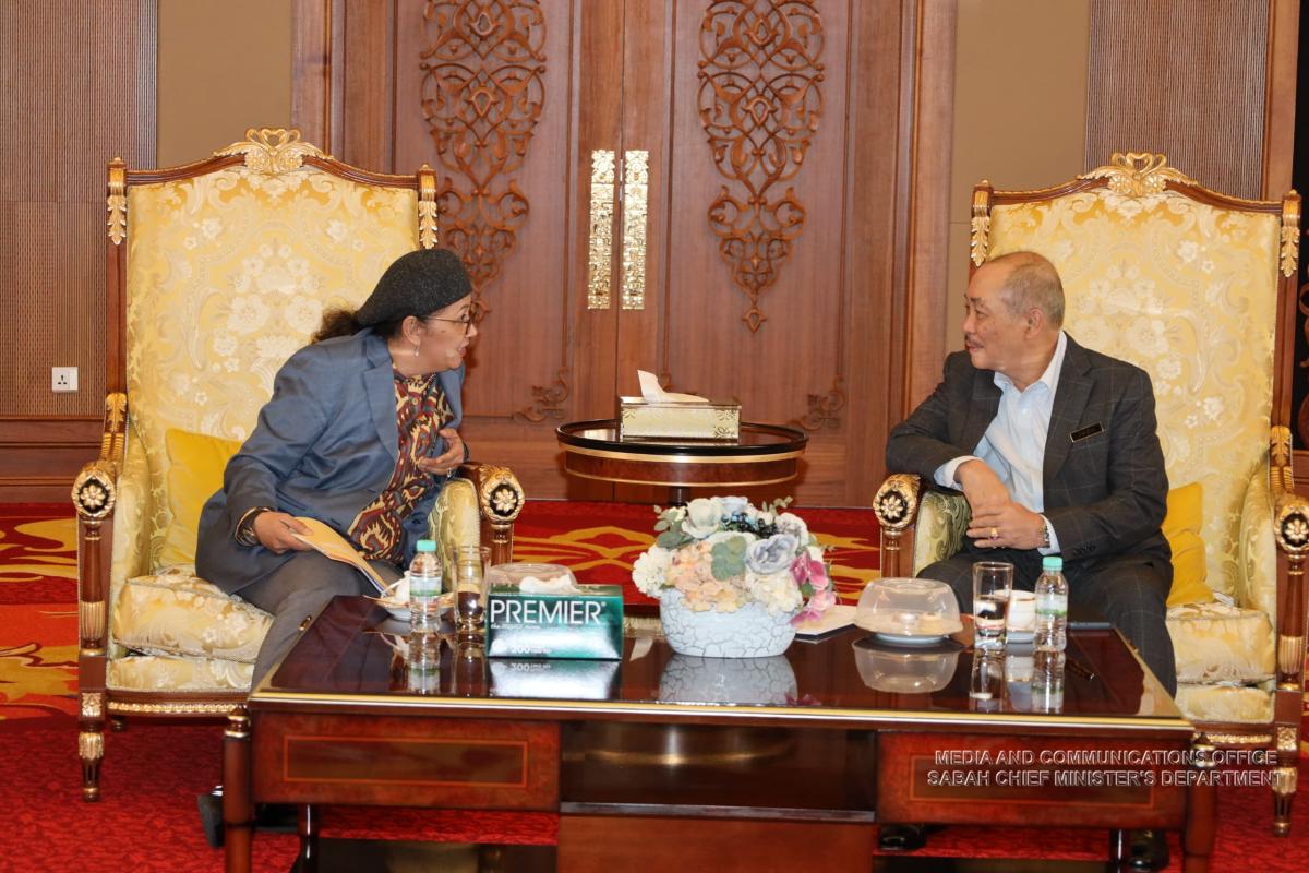 Yang Amat Berhormat Ketua Menteri menerima Kunjungan Hormat daripada Timbalan Menteri Ekonomi, Yang Berhormat Dato Hajjah Hanifah Hajar Taib di Menara Kinabalu