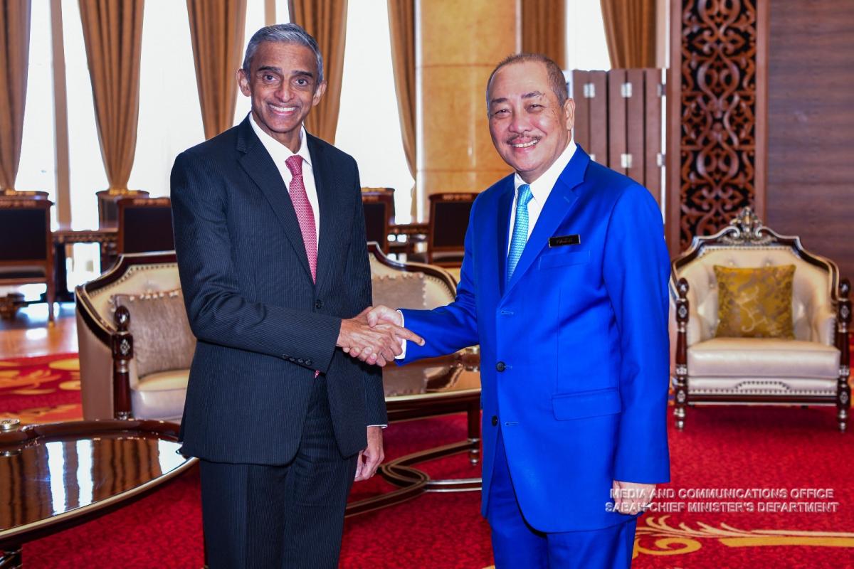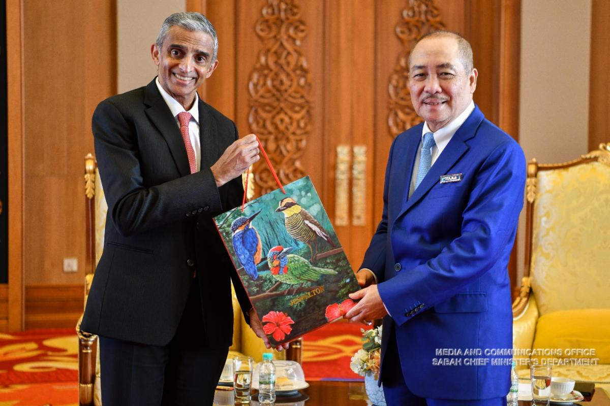 Yang Amat Berhormat Ketua Menteri menerima Kunjungan Hormat daripada Pesuruhjaya Tinggi Singapura Ke Malaysia, Tuan Yang Terutama Vanu Gopala Menon di Menara Kinabalu