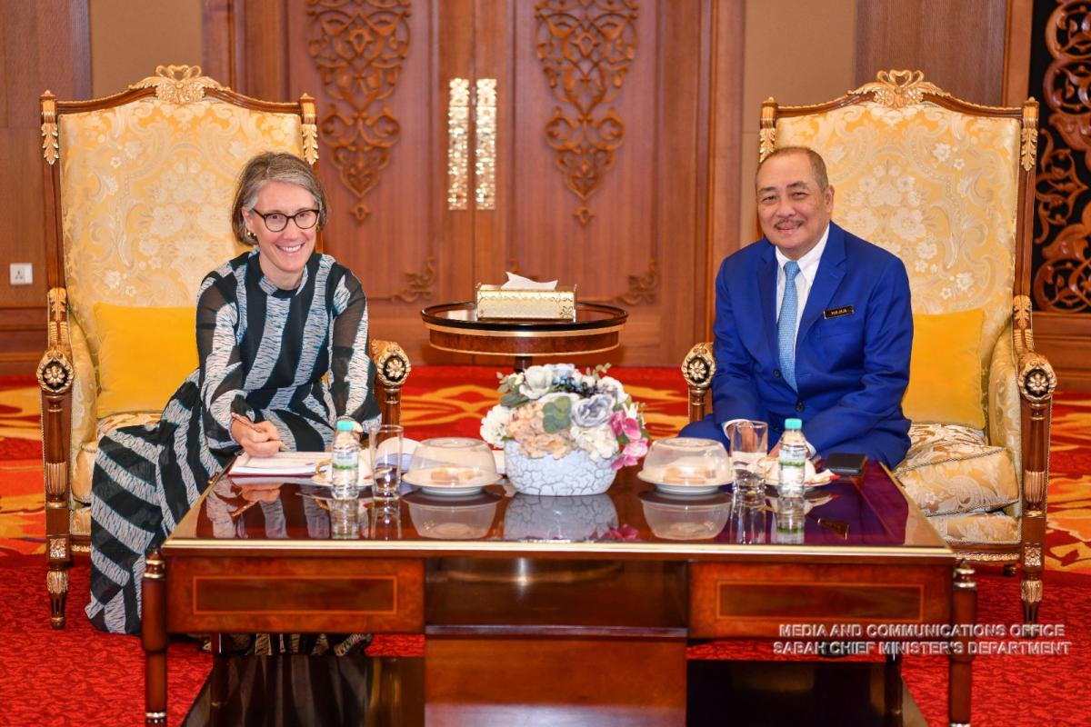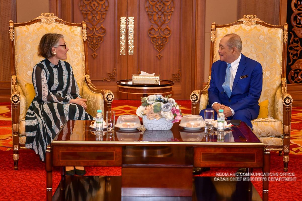 Yang Amat Berhormat Ketua Menteri menerima Kunjungan Hormat daripada Pesuruhjaya Tinggi British Ke Malaysia, H.E Ailsa Terry CMG, di Pejabat Ketua Menteri Menara Kinabalu