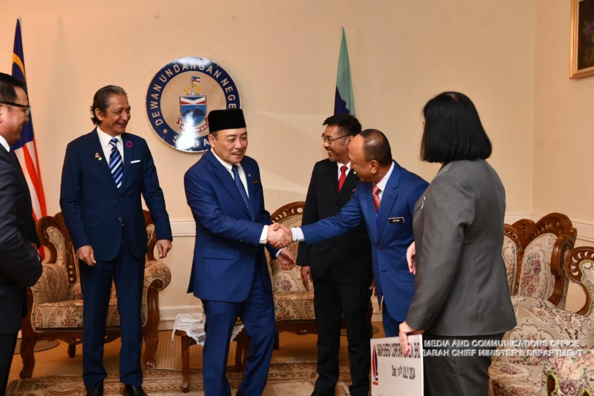 Yang Amat Berhormat Ketua Menteri Menyaksikan Penyampaian Cek Dividen Perbadanan Tenaga Sabah Sdn Bhd (SEC) kepada Kerajaan Negeri Sabah Yang Diketuai oleh Ketua Pegawai Eksekutif SEC Datuk Adzmir Abdul Rahman di Bilik Danum, Dewan Undangan Negeri Sabah
