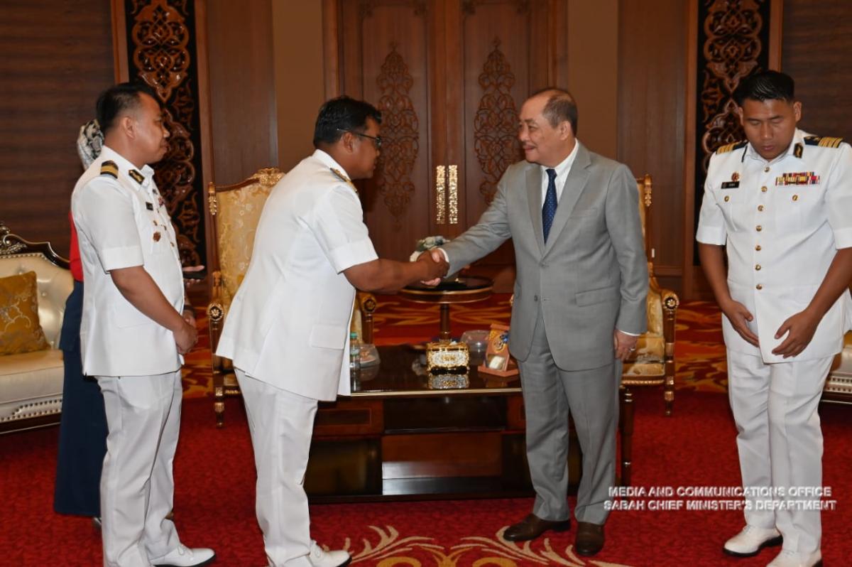 Yang Amat Berhormat Ketua Menteri menerima Kunjungan Hormat daripada Pengarah Agensi Penguatkuasa Maritim Malaysia (Maritim) Negeri Sabah dan Wilayah Persekutuan Labuan, Laksamana Pertama Maritim Datuk Che Engku Suhaimi Che Engku Daik, Pejabat Ketua Menteri