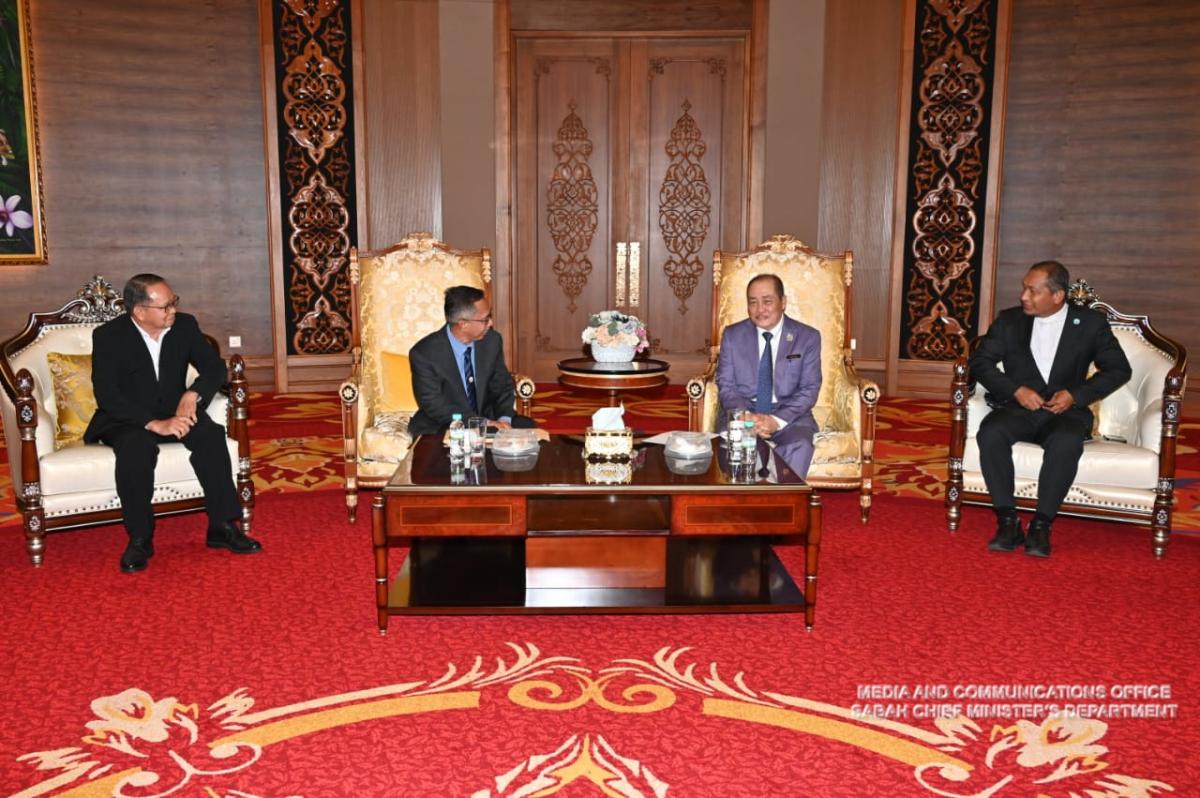 Yang Amat Berhormat Ketua Menteri menerima Kunjungan Hormat daripada Ahli Lembaga Pengarah Lembaga Industri Getah Sabah (LIGS), Encik Sabdil Tanjong bersama Ahli Kumpulannya di Pejabat Ketua Menteri, Menara Kinabalu