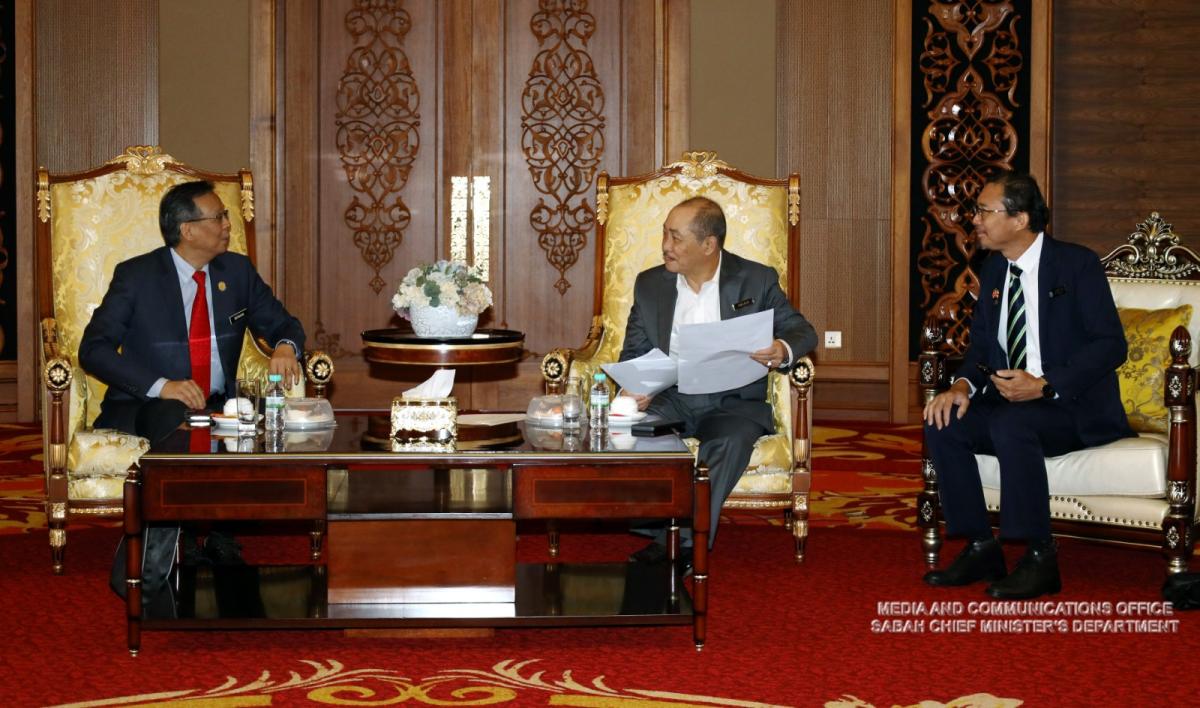 Yang Amat Berhormat Ketua Menteri menerima Kunjungan Hormat daripada Institusi Juruukur Diraja Malaysia (Cawangan Sabah), diketuai oleh Sr. Robert Tseu di Pejabat Ketua Menteri, Menara Kinabalu