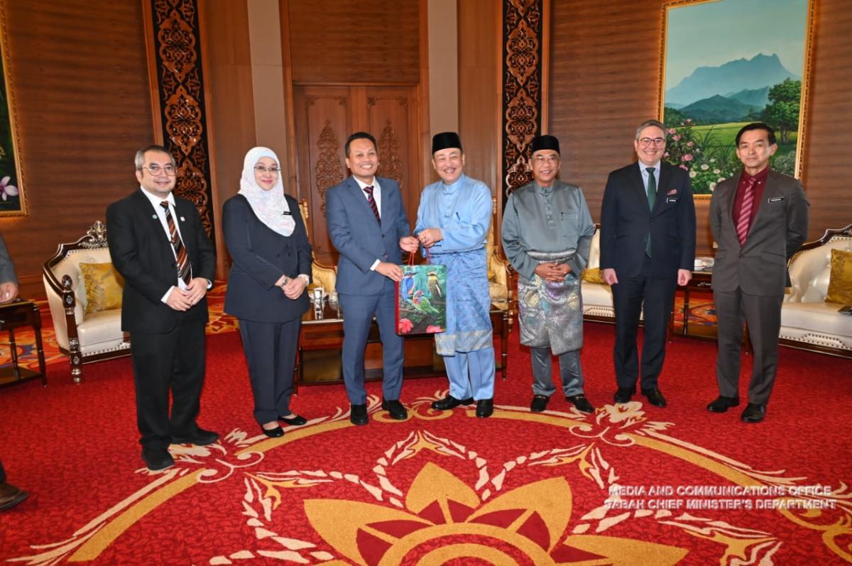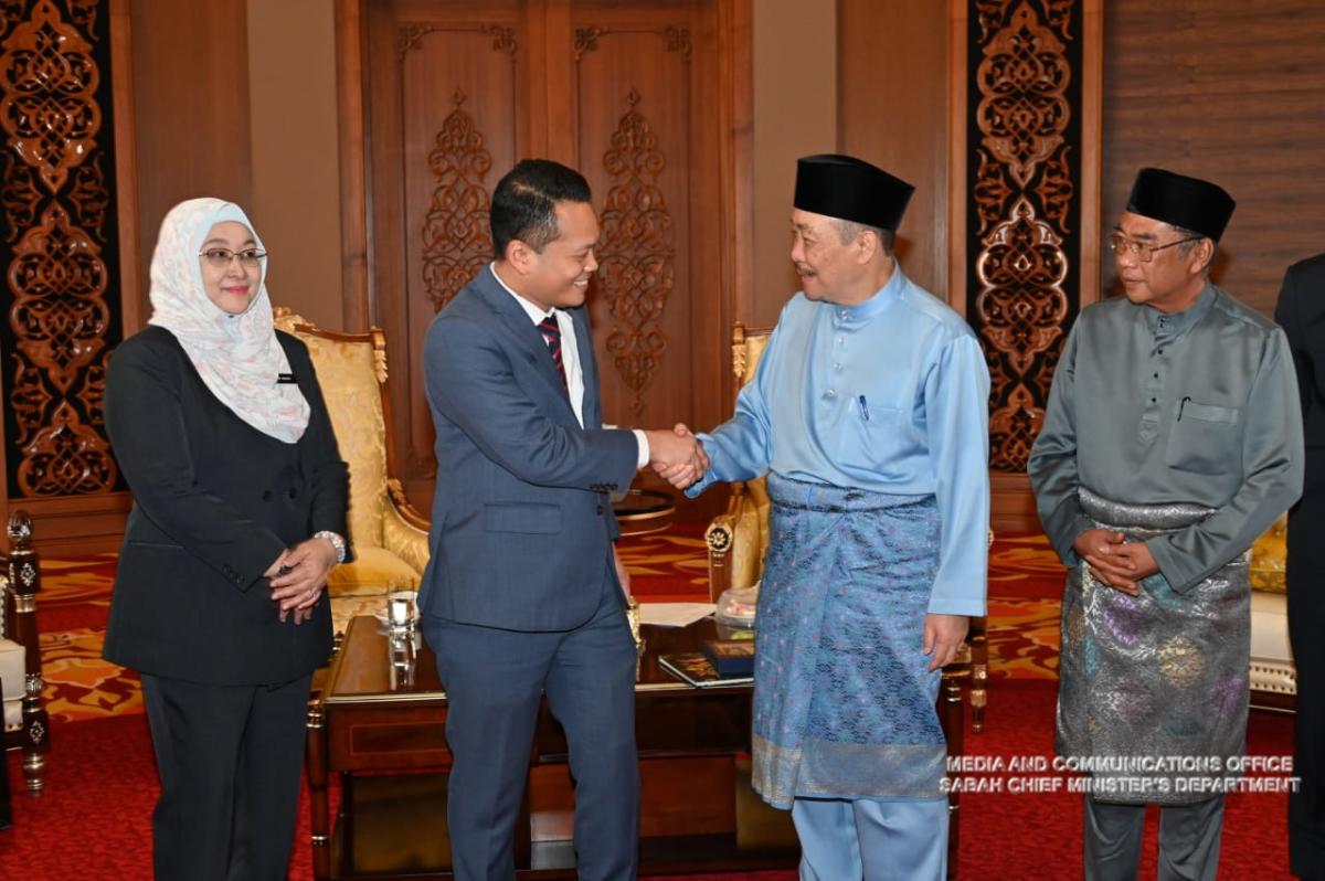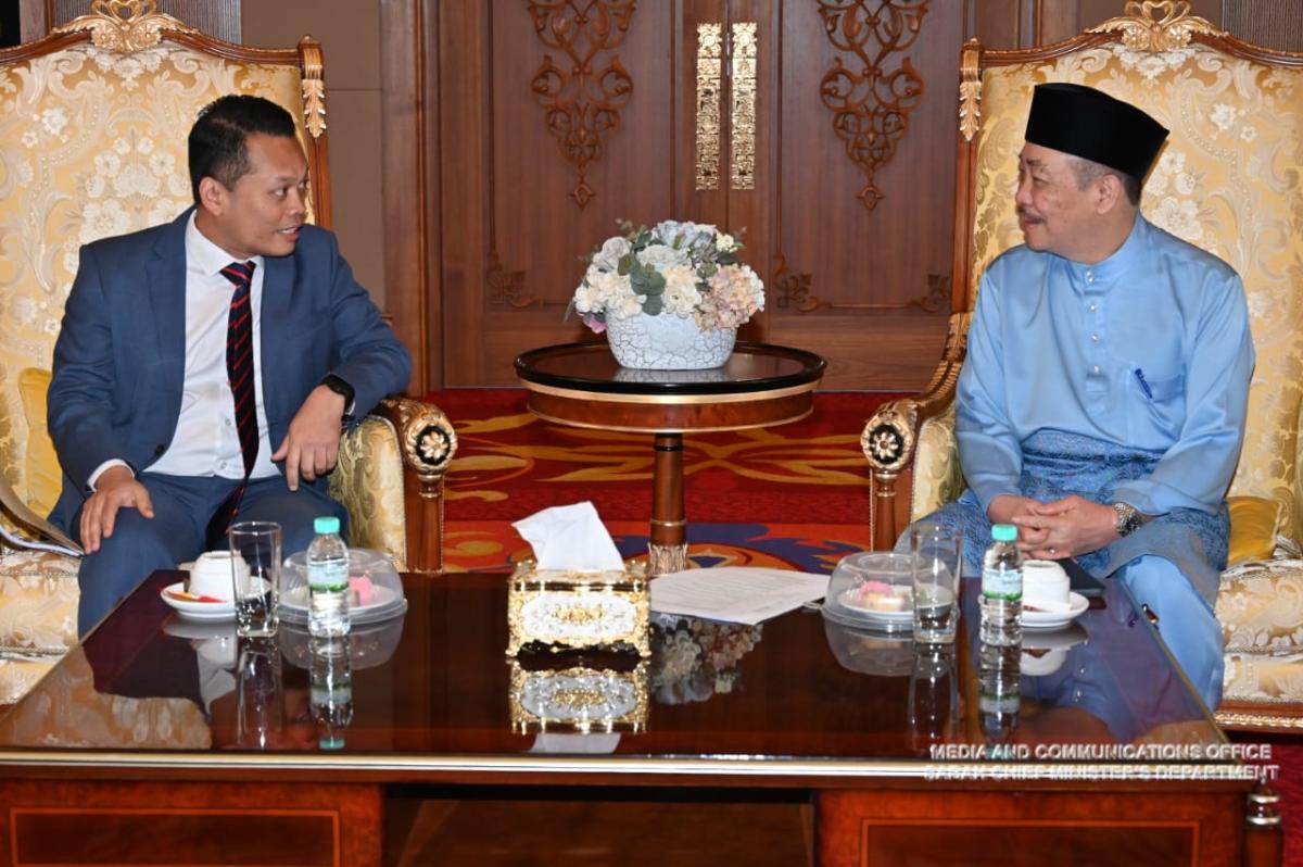 Yang Amat Berhormat Ketua Menteri menerima Kunjungan Hormat daripada Menteri Sumber Asli dan Kelestarian Alam, Yang Berhormat Tuan Nik Nazmi bin Nik Ahmad, di Tingkat 33, Menara Kinabalu