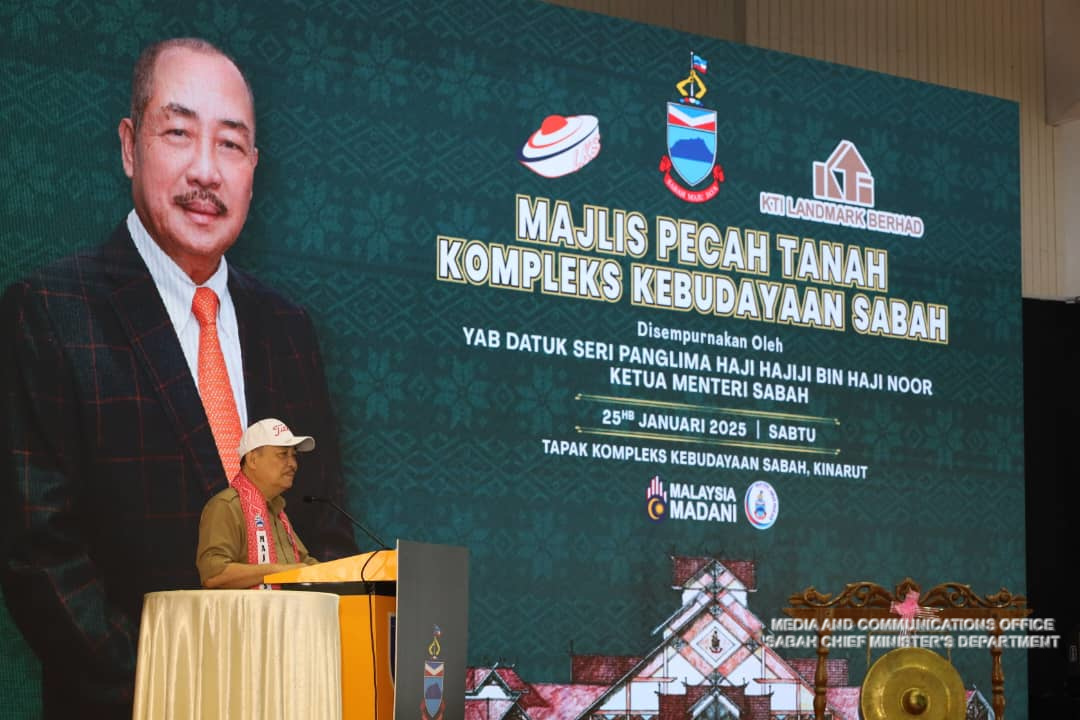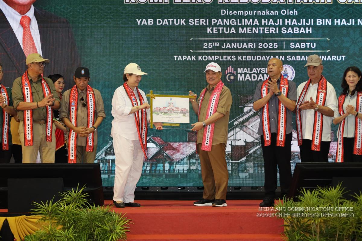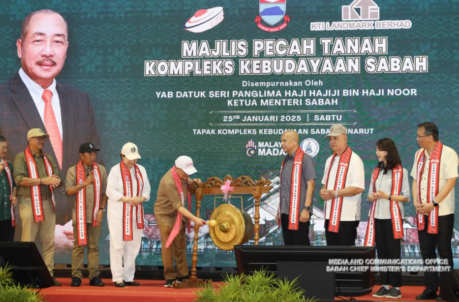 Yang Amat Berhormat Ketua Menteri Merasmikan Majlis Pecah Tanah Kompleks Kebudayaan Sabah, Kinarut di Tapak Kompleks Kebudayaan Sabah, Kinarut