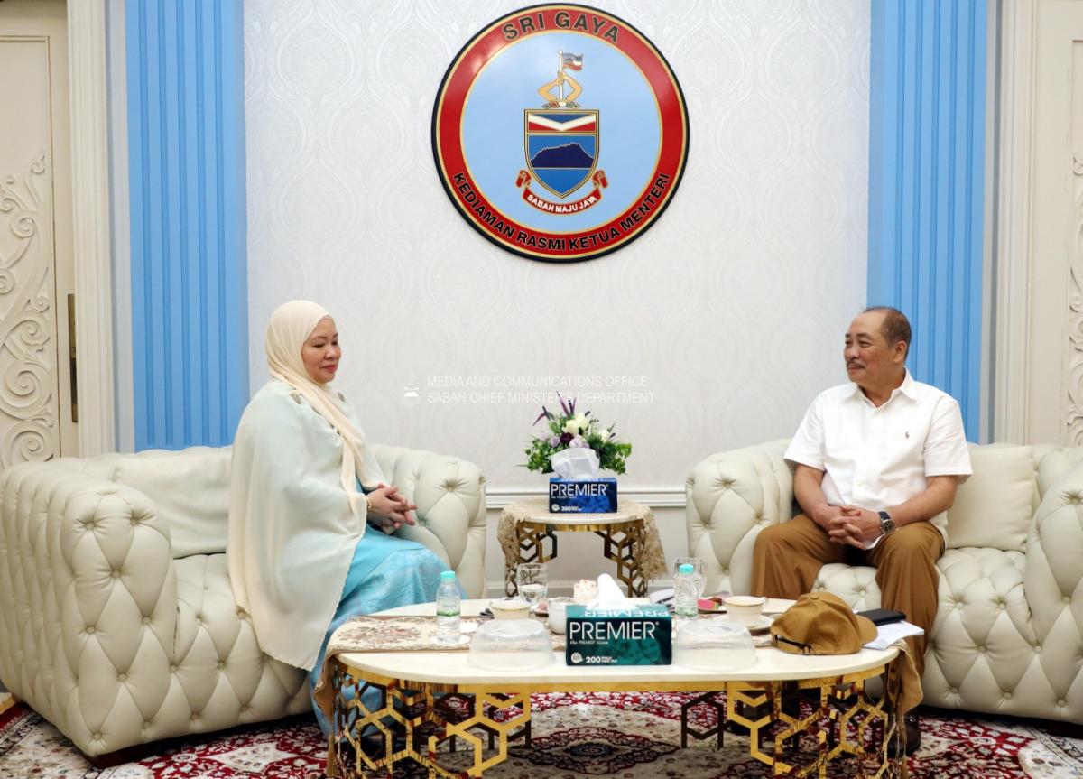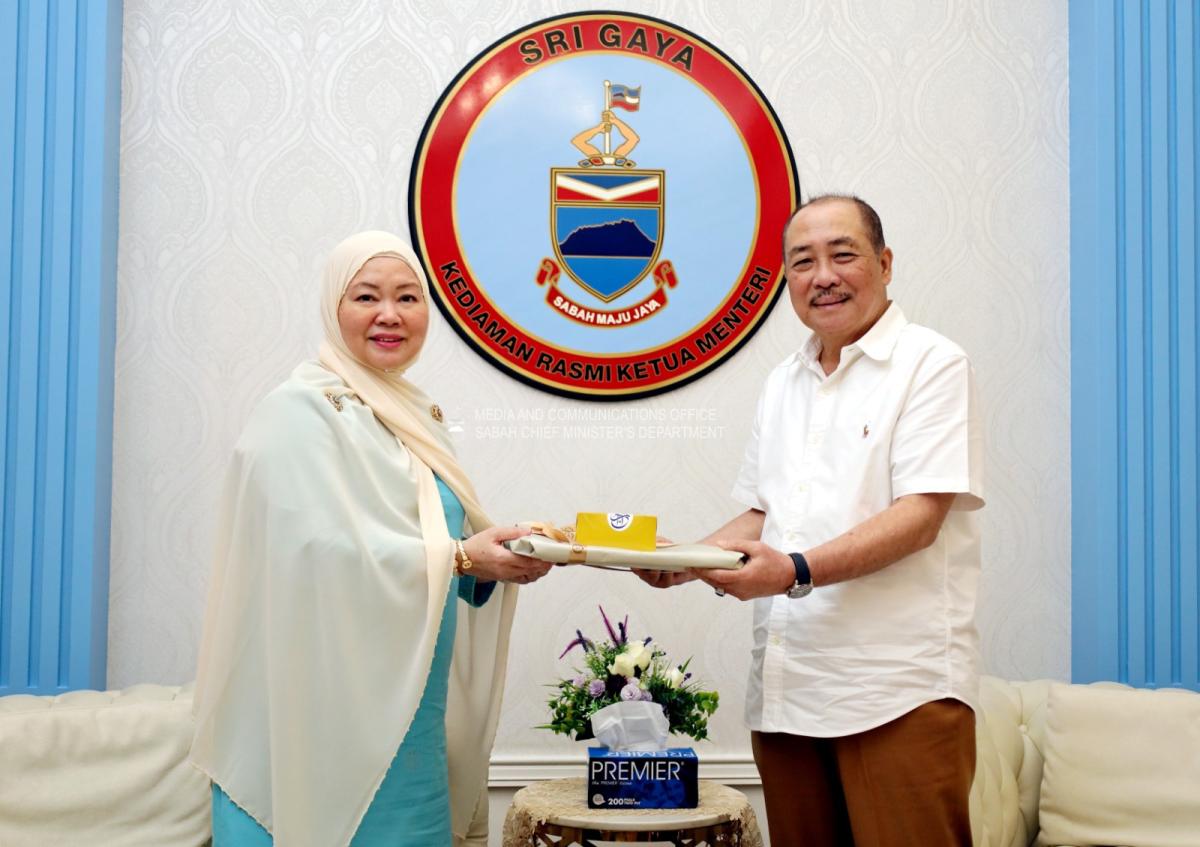 Yang Amat Berhormat Ketua Menteri menerima Kunjungan Hormat daripada YAM Paduka Puteri Tunku Mariam bte Al-Marhum Al-Mutawakkil Alallah Sultan Iskandar Al-Haj, di Kediaman Rasmi Ketua Menteri, Sri Gaya