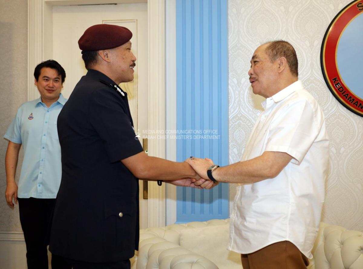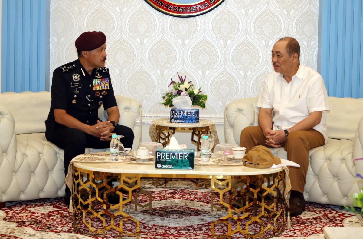 Perjumpaan bersama Pengarah Jabatan Siasatan dan Penguatkuasaan Trafik (JSPT) Bukit Aman, Datuk Seri Mohd Yusri Hassan Basri dan rombongan di Kediaman Rasmi Ketua Menteri, Sri Gaya