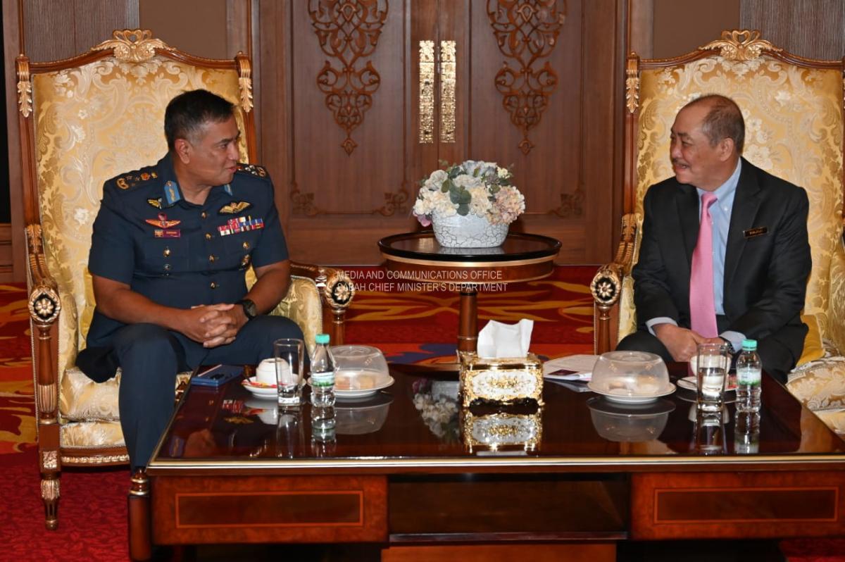 Yang Amat Berhormat Ketua Menteri menerima Kunjungan Hormat daripada Panglima Angkatan Bersama, Markas Angkatan, Leftenan Jeneral Dato’ Zahani bin Hj Zainal Abidin, Bersama Kem Al-Sultan Abdullah, Kuantan, di Menara Kinabalu