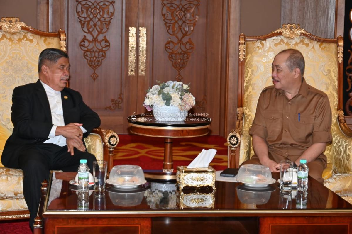 Yang Amat Berhormat Ketua Menteri menerima Kunjungan Hormat daripada Menteri Pertanian dan Keterjaminan Makanan, YB Datuk Seri Haji Mohamad bin Sabu, di Pejabat Ketua Menteri, Menara Kinabalu