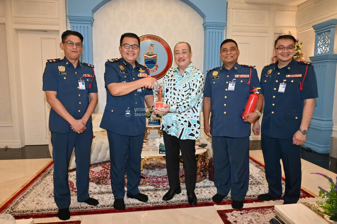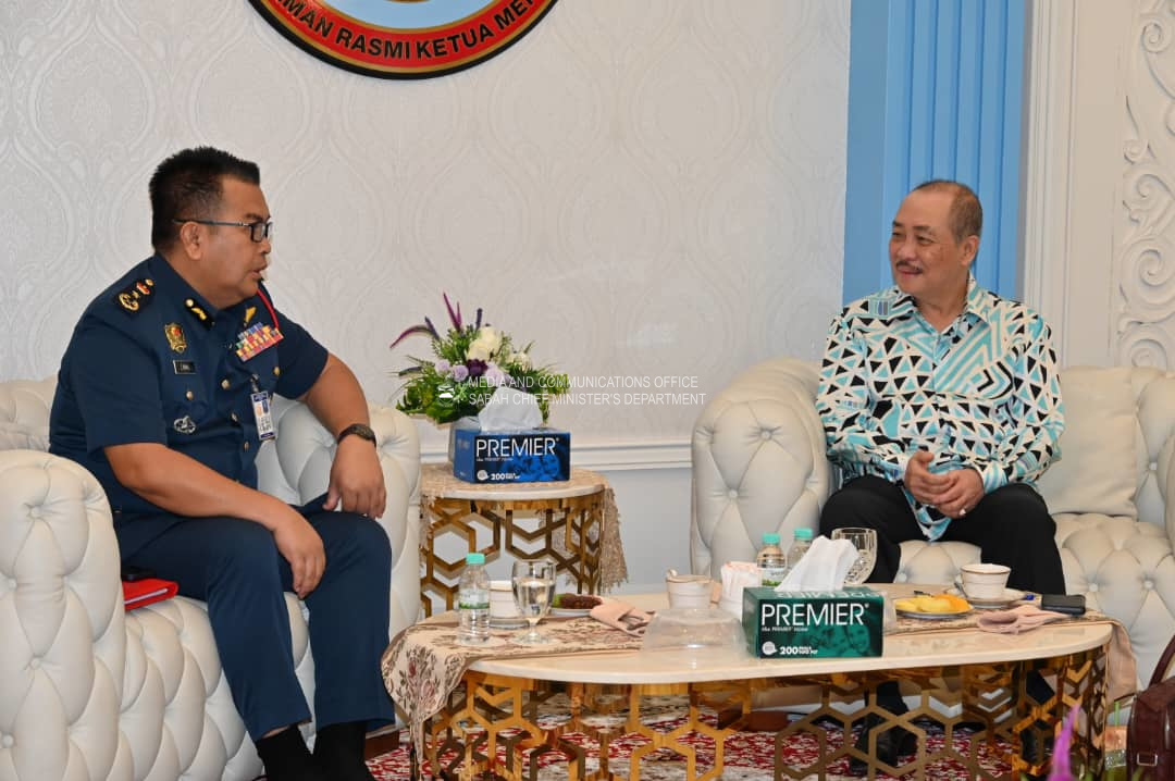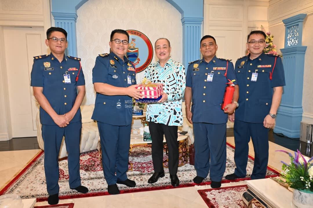 Yang Amat Berhormat Ketua Menteri menerima Kunjungan Hormat daripada Pengarah Jabatan Bomba dan Penyelamat Malaysia Negeri Sabah, Encik Jainal @ Zainal bin Madasin, di Kediaman Rasmi Ketua Menteri, Sri Gaya