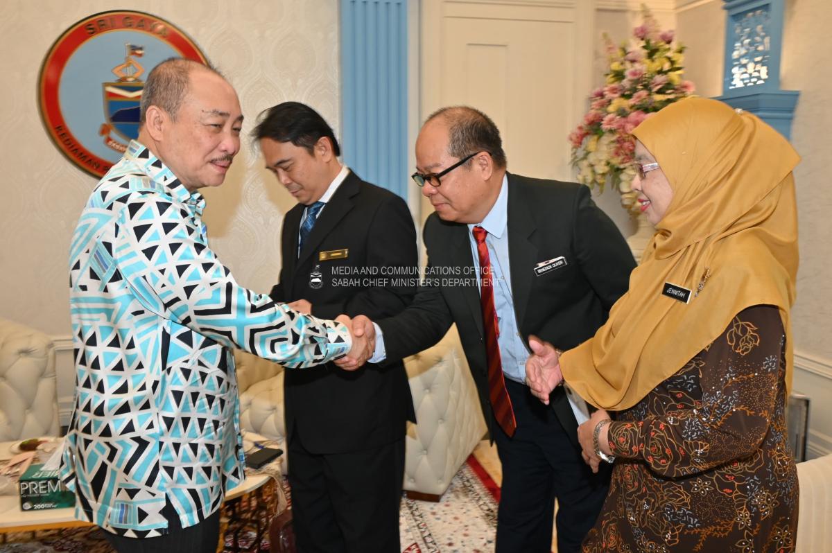 Yang Amat Berhormat Ketua Menteri menerima Kunjungan Hormat daripada Mayar Bandaraya KK (Re:Kertas Kerja Ke UNESCO untuk Mendapatkan Pengiktirafan Kota Kinabalu Sebagai Kota Literasi) di Kediaman Rasmi Ketua Menteri, Sri Gaya