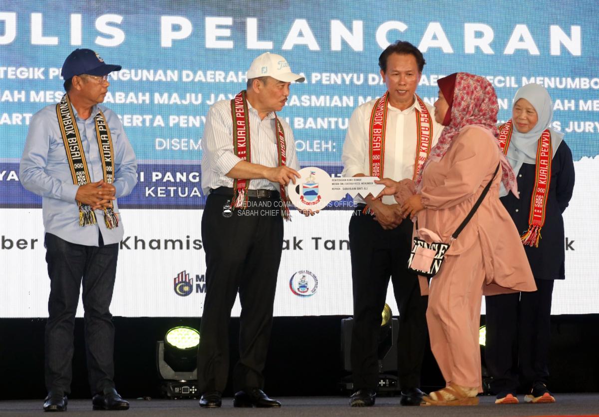 Majlis Pelancaran Buku Pelan Strategi Pembangunan Daerah Kuala Penyu dan Daerah Kecil Menumbok, Penyerahan Kunci Rumah Mesra Sabah Maju Jaya (SMJ), Penyerahan Geran Tanah serta Penyampaian Bantuan Yayasan Datuk Limus Jury, di Tapak Tamu Pekan Menumbuk