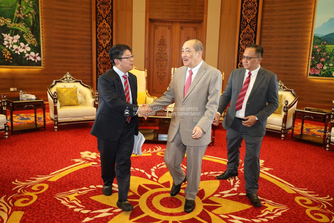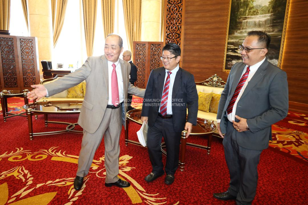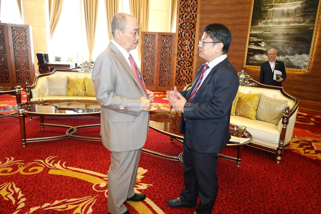 Yang Amat Berhormat Ketua Menteri menerima Kunjungan Hormat daripada Menteri Perindustrian, Usahawan dan Pengangkutan Sabah, Yang Berhormat Datuk Ewon Benedick di Pejabat Ketua Menteri, Menara Kinabalu