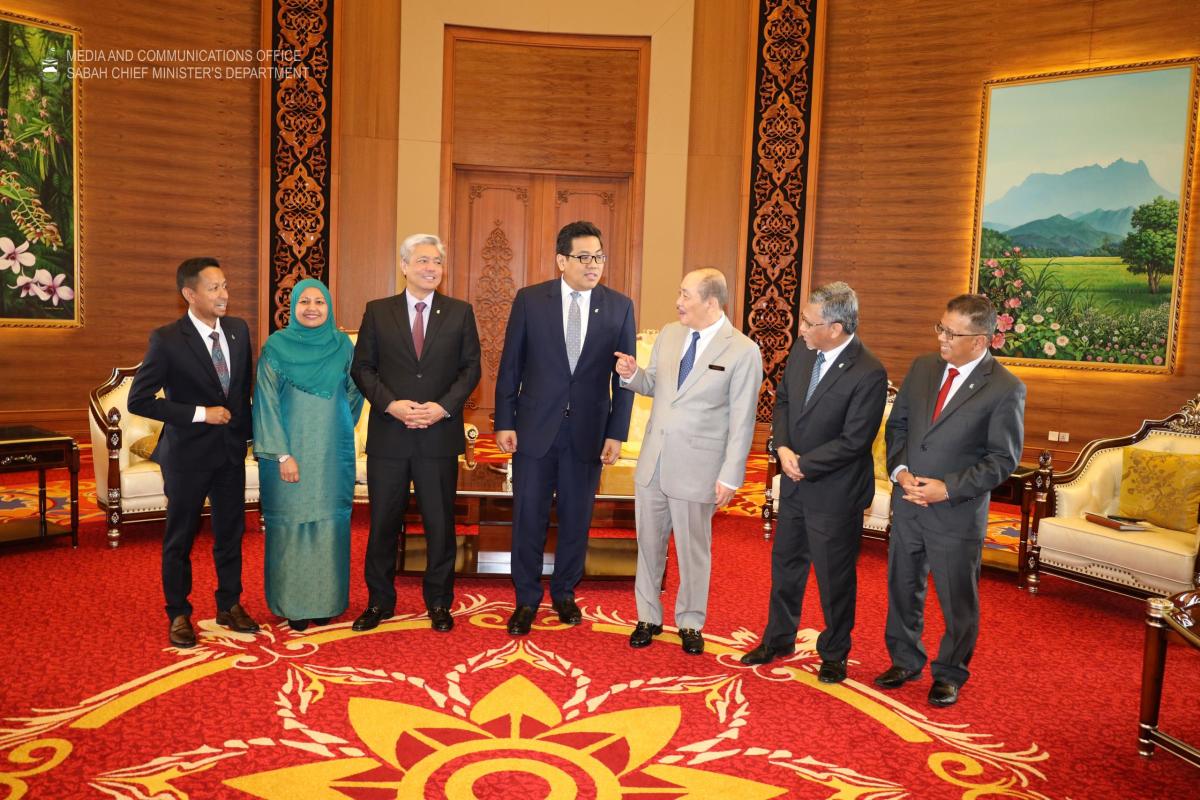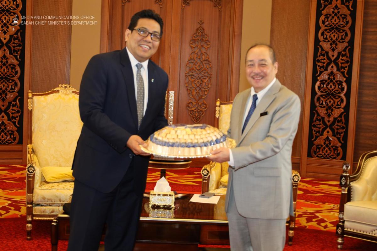 Yang Amat Berhormat Ketua Menteri menerima Kunjungan Hormat daripada President dan Group CEO Petronas, YM Tan Sri Datuk Tengku Muhammad Taufik Tengku Aziz, di Aras 33, Menara Kinabalu