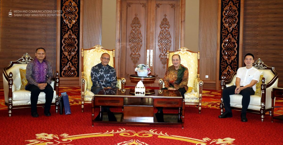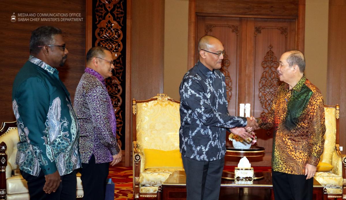 YAB Ketua Menteri menerima Kunjungan Hormat daripada kumpulan SD Guthrie Berhad yang diketuai oleh Ketua Operasi unit Guthrie, Razlanshah Abd Malek dan penyampaian dana kepada Yayasan Kebajikan Sabah, di Aras 33, Menara Kinabalu