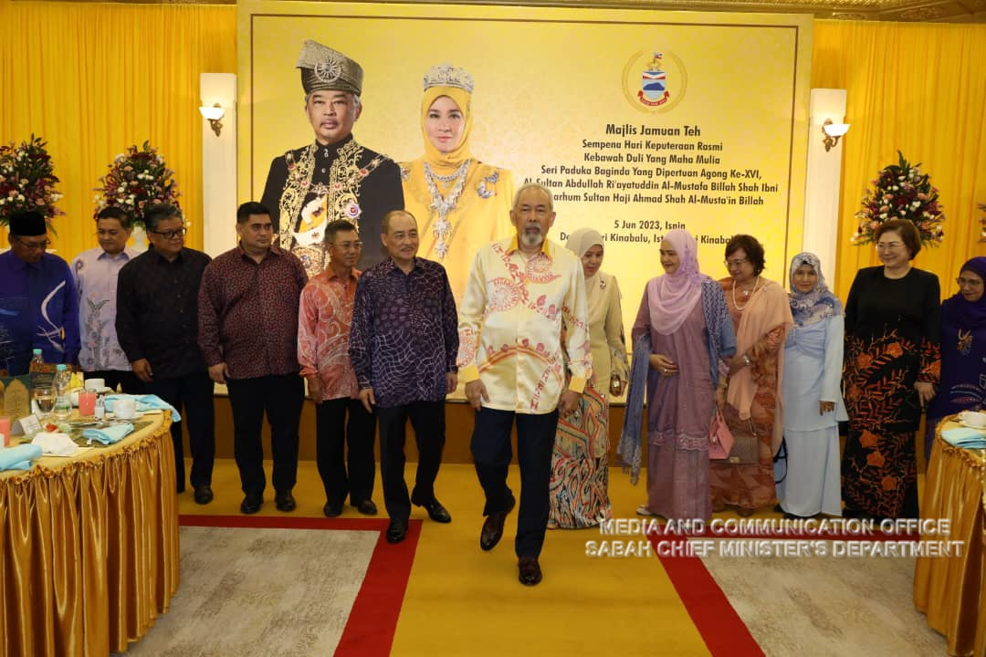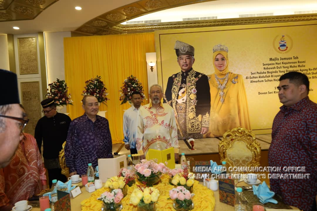 Majlis Jamuan Teh Diraja Sempena Hari Keputeraan Rasmi Duli Yang Maha Mulia Seri Paduka Baginda Yang Di Pertuan Agong ke-16 Al-Sultan Abdullah Ri’ayatuddin Al-Mustafa Billah Shah Ibni Almarhum Sultan Haji Ahmad Shah Al-Musta’in Billah di Dewan Seri Kinabalu Istana Seri Kinabalu