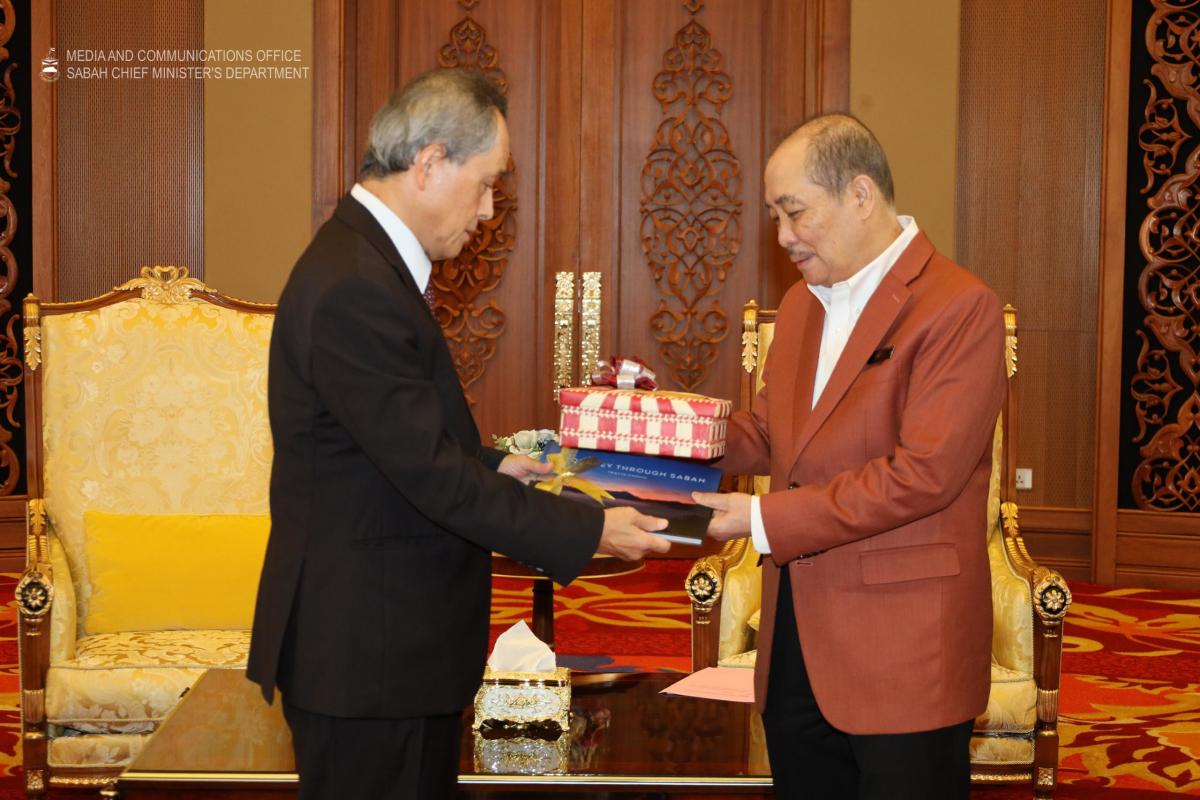 Yang Amat Berhormat Ketua Menteri menerima Kunjungan Hormat Perpisahan daripada, Ketua Pejabat Konsular, Jepun untuk Sabah, Sarawak dan Wilayah Persekutuan Labuan, Mr. YAMASHITA Yoshito, di Aras 33, Menara Kinabalu