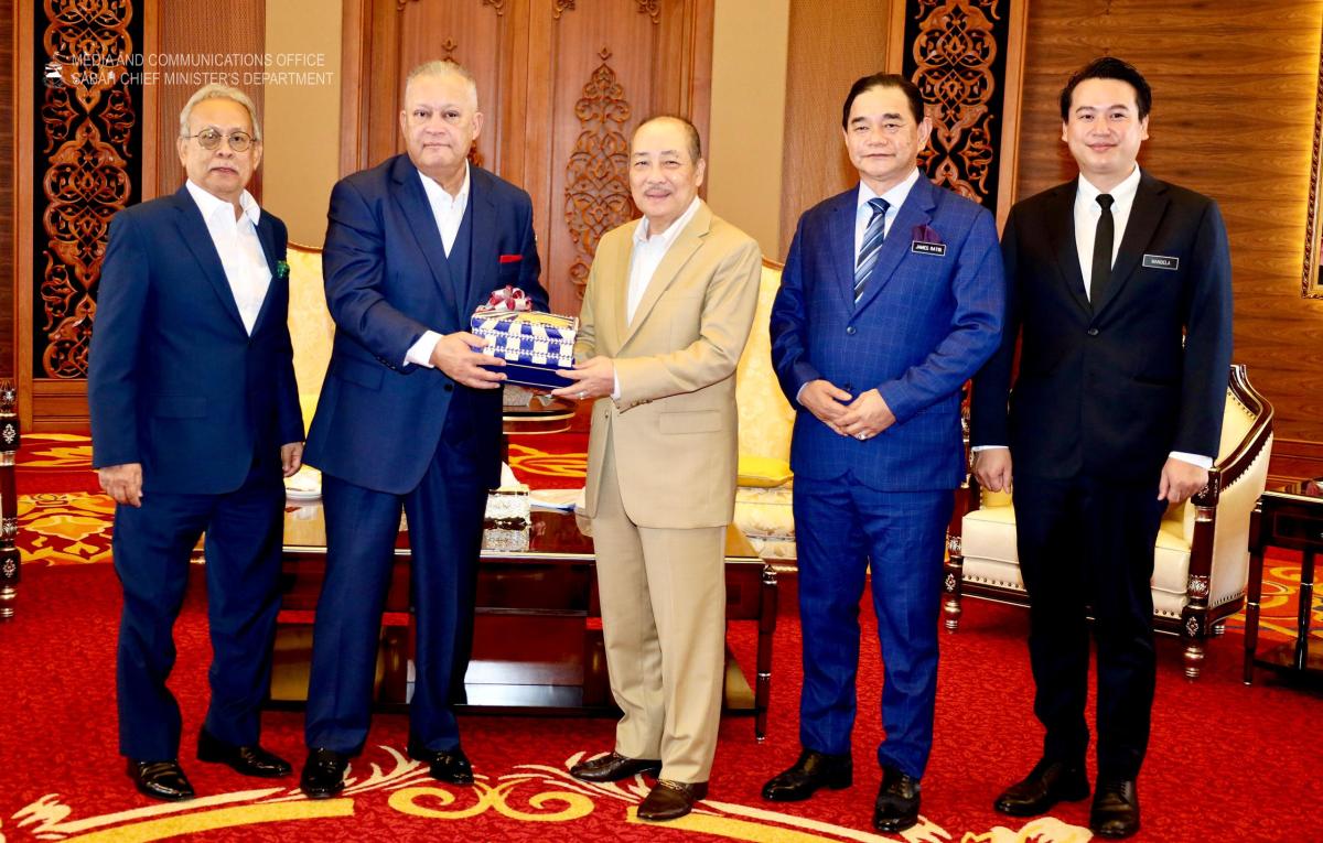 Yang Amat Berhormat Ketua Menteri menerima Kunjungan Hormat daripada Pengerusi Suruhanjaya Komunikasi dan Multimedia Malaysia, Tan Sri Mohd Salim Fateh Din, di Aras 33, Menara Kinabalu