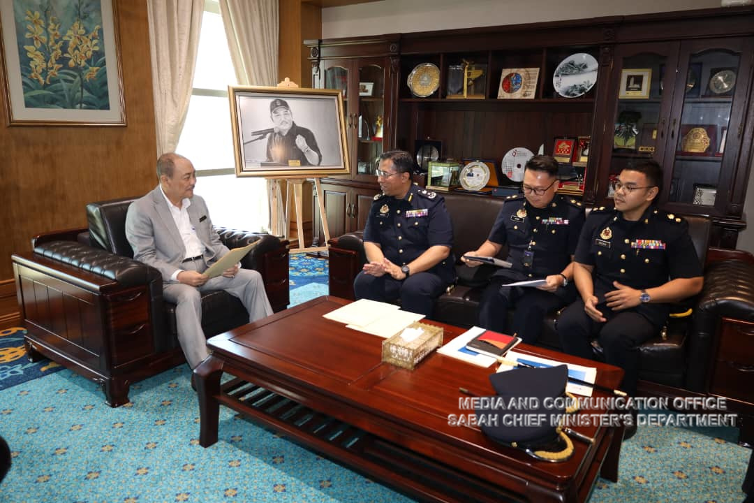 Yang Amat Berhormat Ketua Menteri menerima Kunjungan Hormat daripada Pengarah Jabatan Pengangkutan Jalan Negeri Sabah, Tuan Haji Mohd Harris bin Ali di Pejabat Ketua Menteri Menara Kinabalu