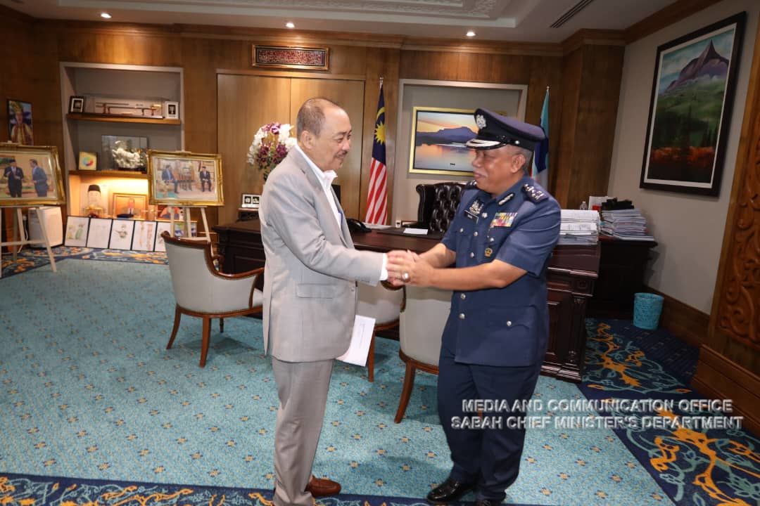 Yang Amat Berhormat Ketua Menteri menerima Kunjungan Hormat daripada Penolong Ketua Pengarah Kastam Zon Sabah, Tuan Mohd Nasir bin Deraman di Pejabat Ketua Menteri, Menara Kinabalu