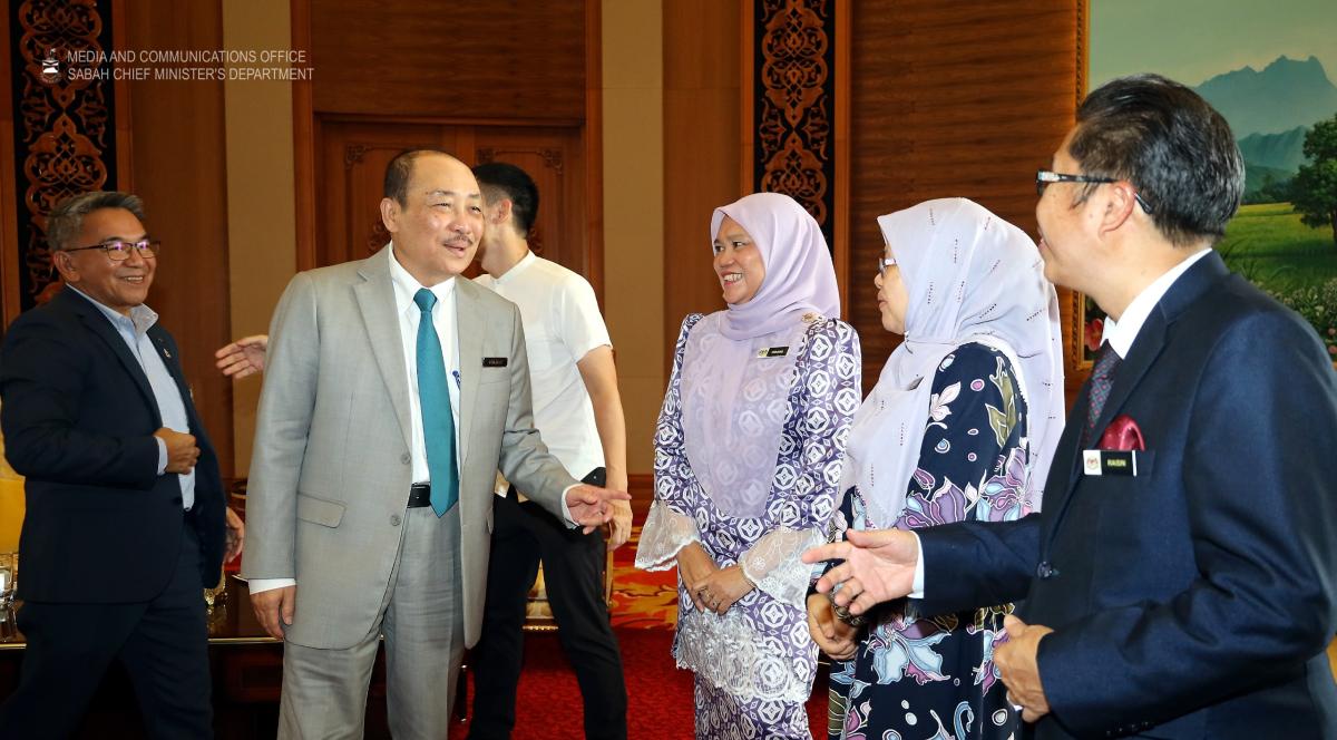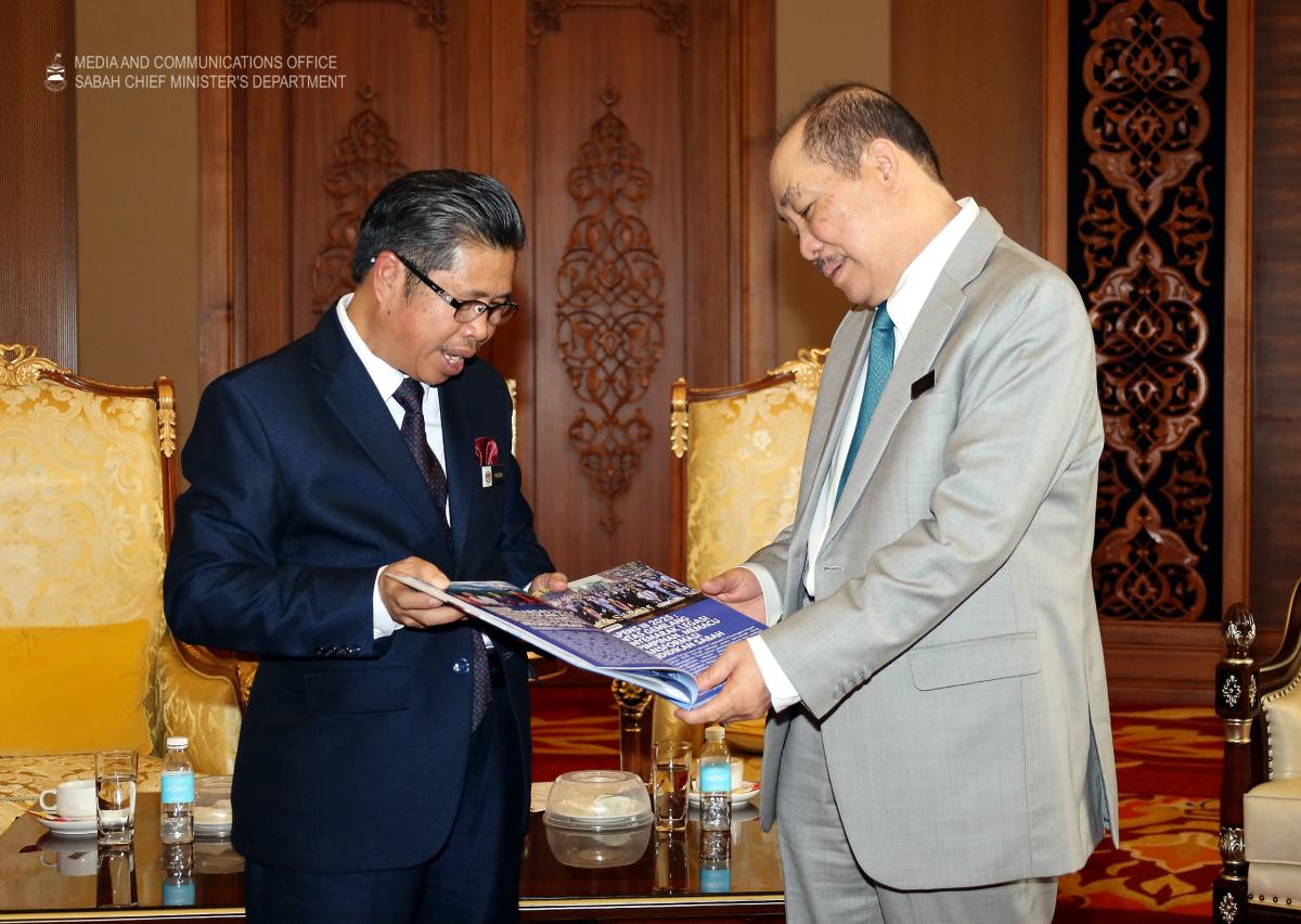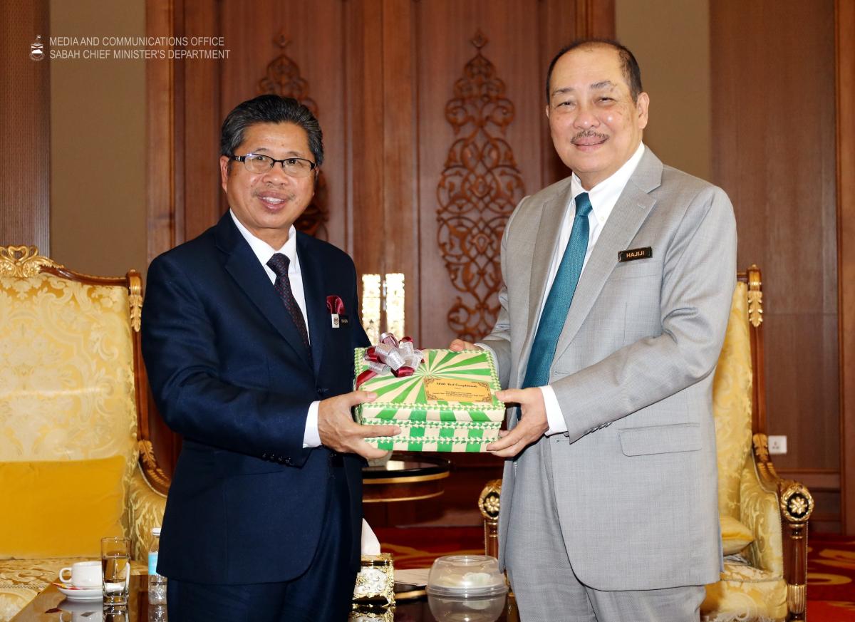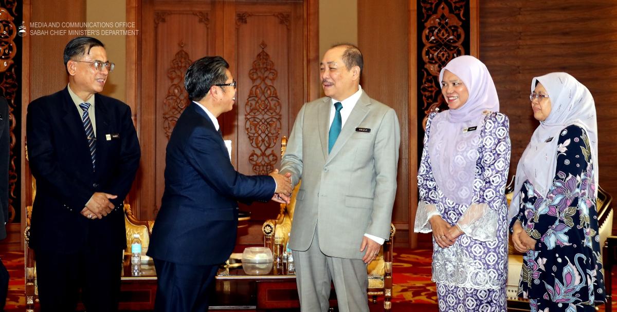 Yang Amat Berhormat Ketua Menteri menerima Kunjungan Hormat daripada Pengarah Jabatan Pendidikan Negeri Sabah, Datuk Haji Raisin bin Saidin, di CMO Penthouse, Tingkat 33, Menara Kinabalu.