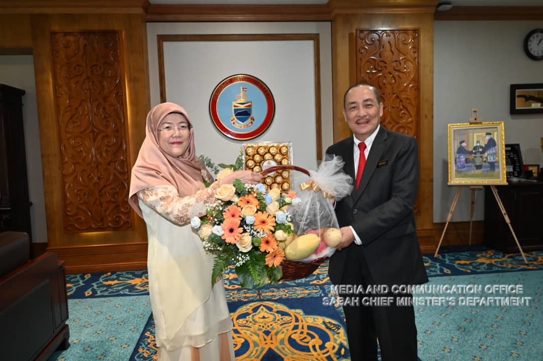 Yang Amat Berhormat Ketua Menteri menerima Kunjungan hormat perpisahan daripada Pengarah Kesihatan Negeri Sabah, Datuk Dr Rose Nani Mudin di Pejabat Ketua Menteri, Menara Kinabalu