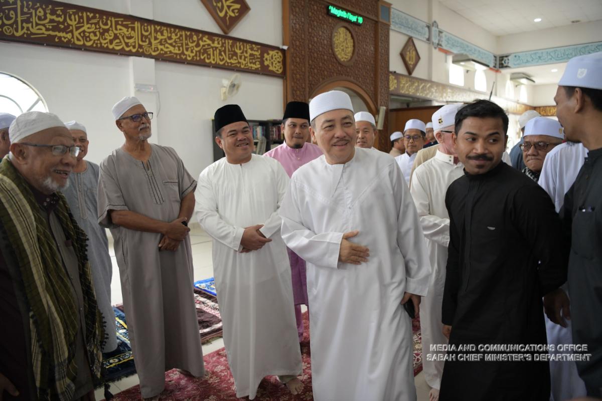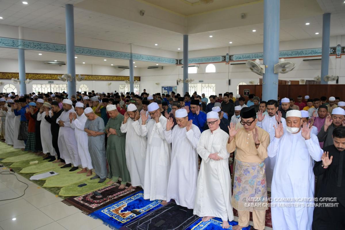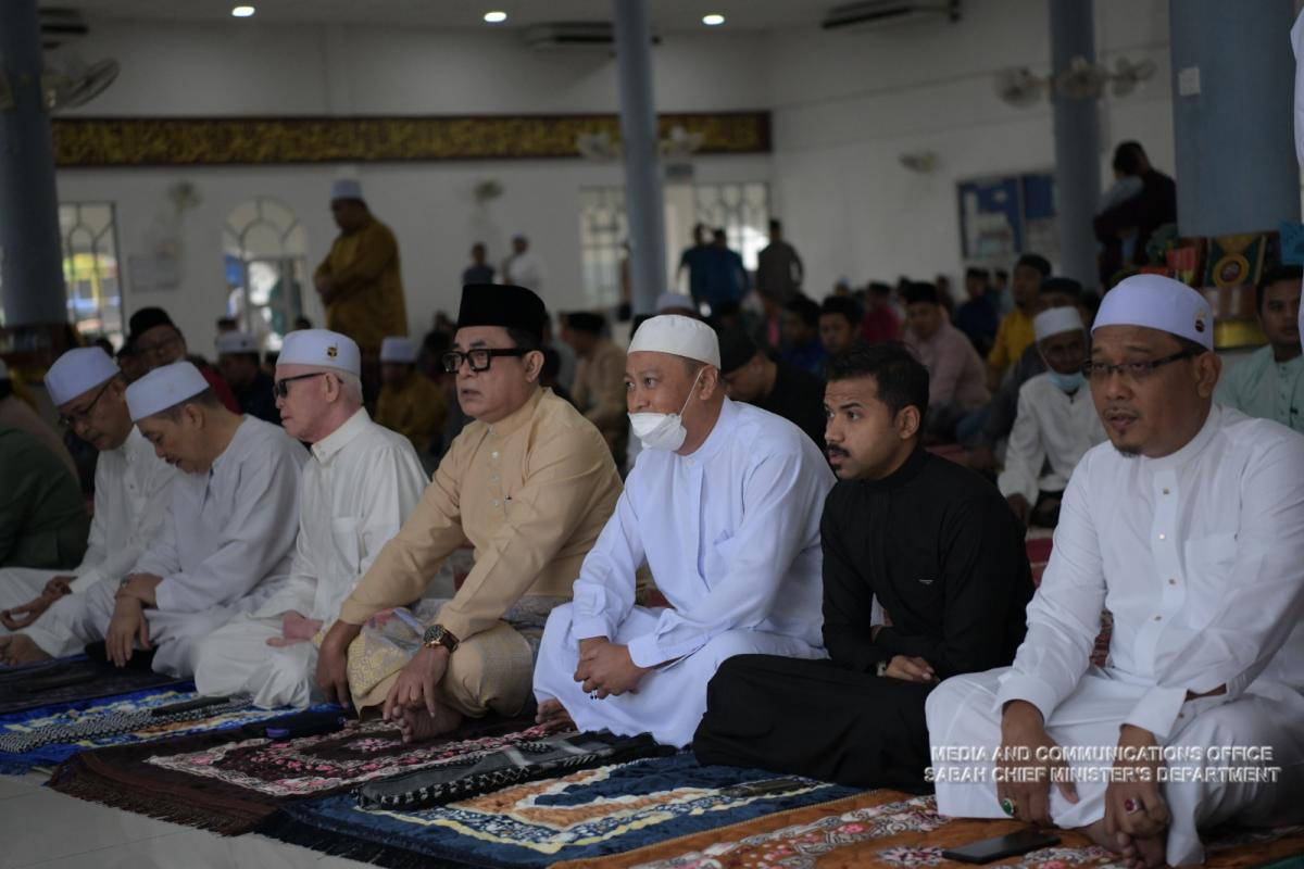 Yang Amat Berhormat Ketua Menteri Menunaikan Solat Sunat Aidil Adha di Masjid Haji Noor, Kampung Serusup, Tuaran