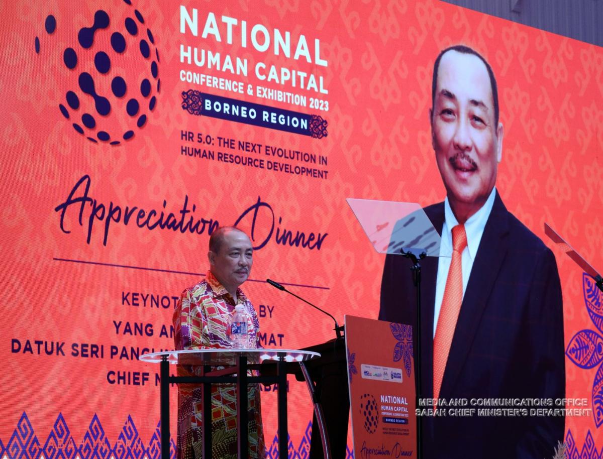Yang Amat Berhormat Ketua Menteri Menghadiri Makan Malam Penghargaan Sempena Persidangan dan Pameran Modal Insan Kebangsaan 2023 di Pusat Konvensyen Antarabangsa Sabah (SICC)