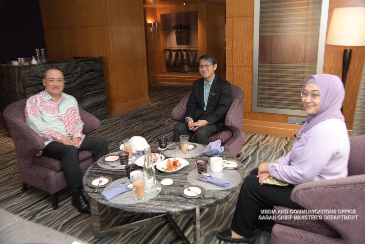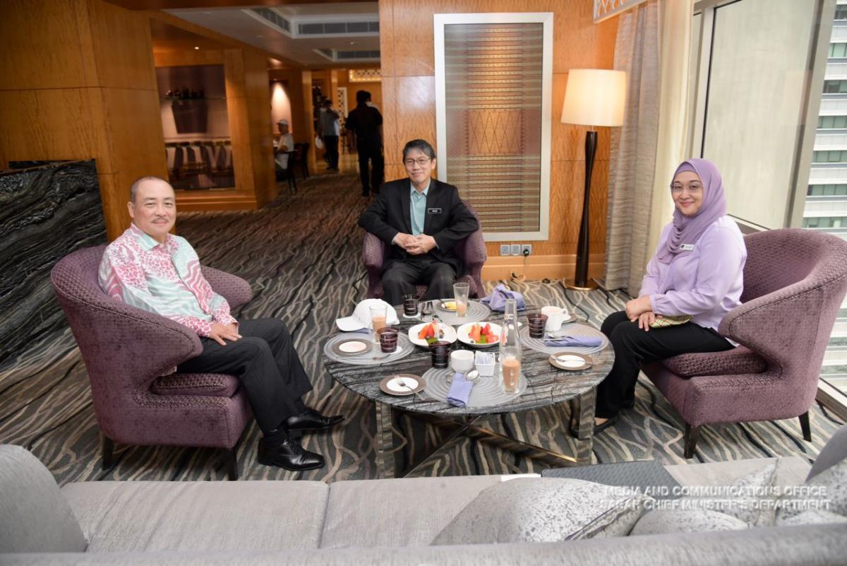 Yang Amat Berhormat Ketua Menteri Mengadakan Sesi Perjumpaan Bersama Ketua Pengarah Jabatan Meteorlogi (MetMalaysia) Muhammad Helmi Abdullah Dan Ketua Pegawai Maklumat (CIO) Yang Bahagia Datuk Nor Yahati di Mandarin Oriental Hotel Kuala Lumpur.