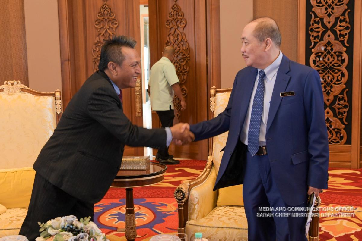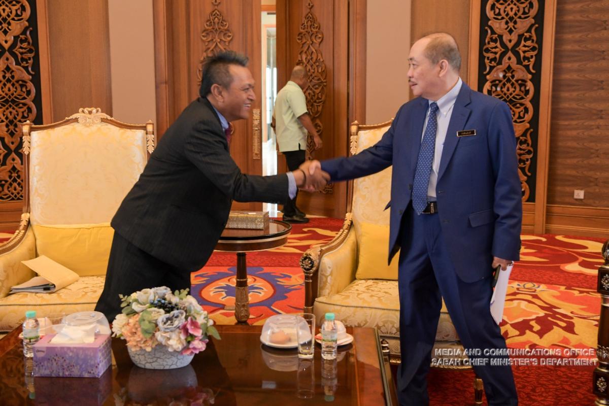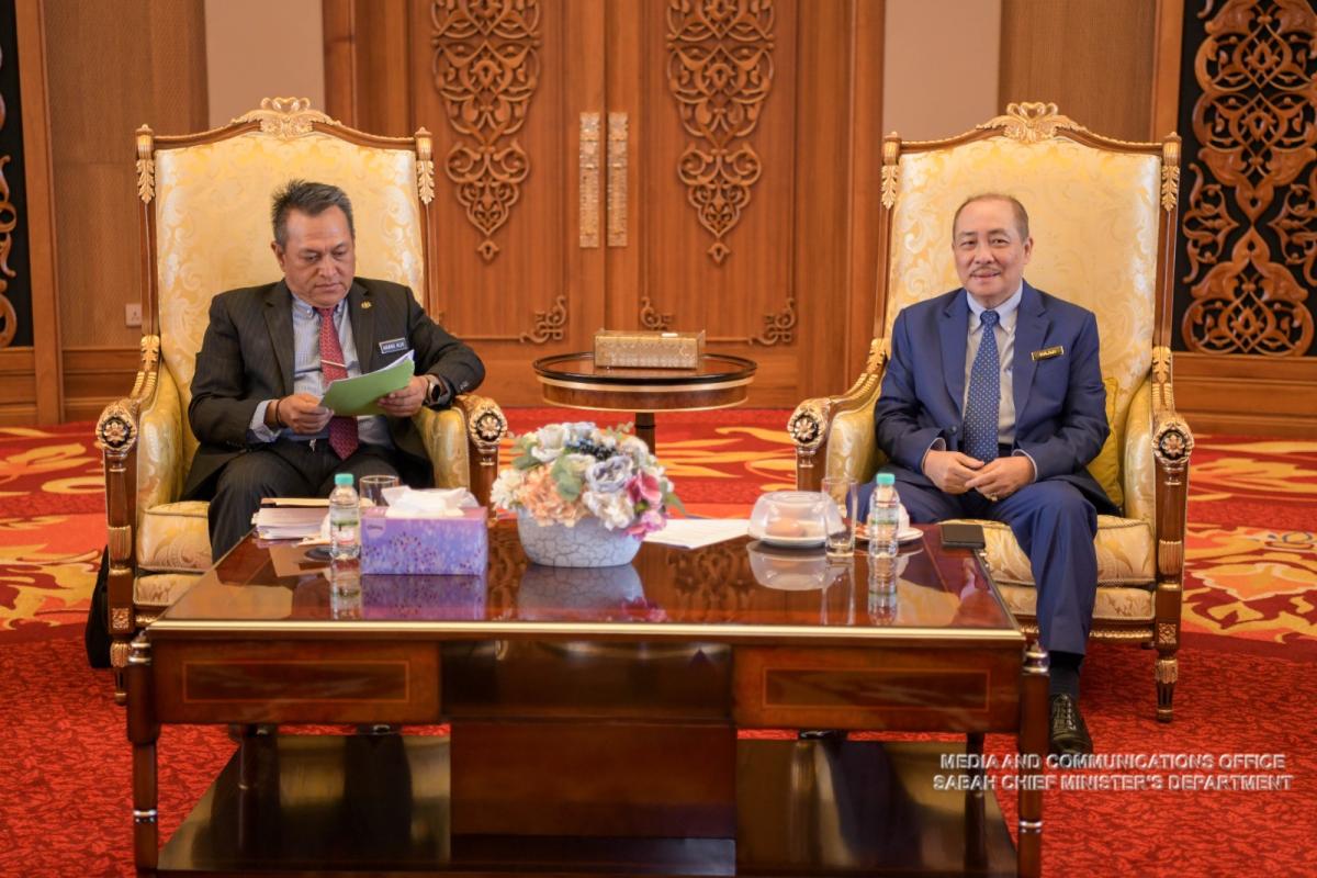 Yang Amat Berhormat Ketua Menteri menerima Kunjungan Hormat daripada Timbalan Ketua Setiausaha (Kewangan & Pembangunan) Jabatan Perdana Menteri (JPM), YBhg Datuk Awang Alik bin Jeman di Menara Kinabalu
