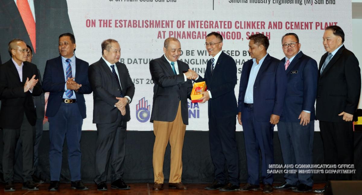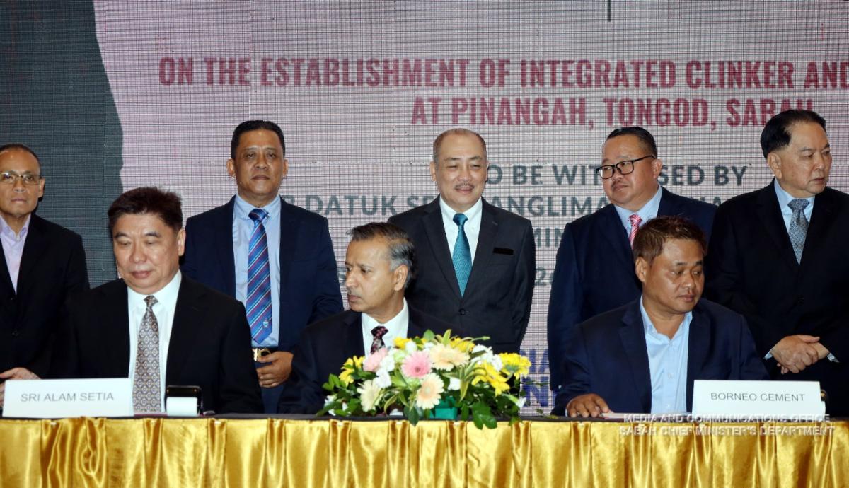 Majlis Permeteraian Cadangan Penubuhan Loji Klinker dan Simen Bersepadu di Pinangah, Tongod. Perjanjian Usahasama antara Perbadanan Pembangunan Ekonomi Sabah (SEDCO) dan Sri Alam Setia Sdn Bhd. Memorandum Perjanjian antara Borneo Cement (Sabah) Sdn Bhd & Sinoma Industry Engineering (M) Sdn Bhd di Tingkat 26, Dewan Bankuasi, Menara Kinabalu.