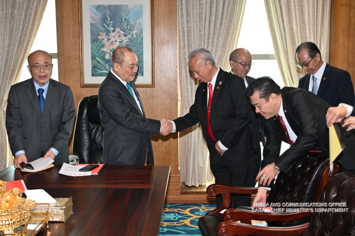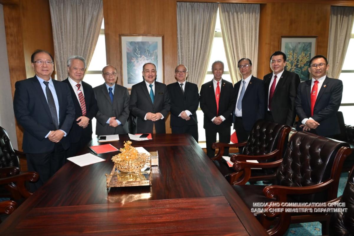 Yang Amat Berhormat Ketua Menteri menerima Kunjungan Hormat daripada Enam Gabungan Persatuan Ekonomi Cina di Menara Kinabalu
