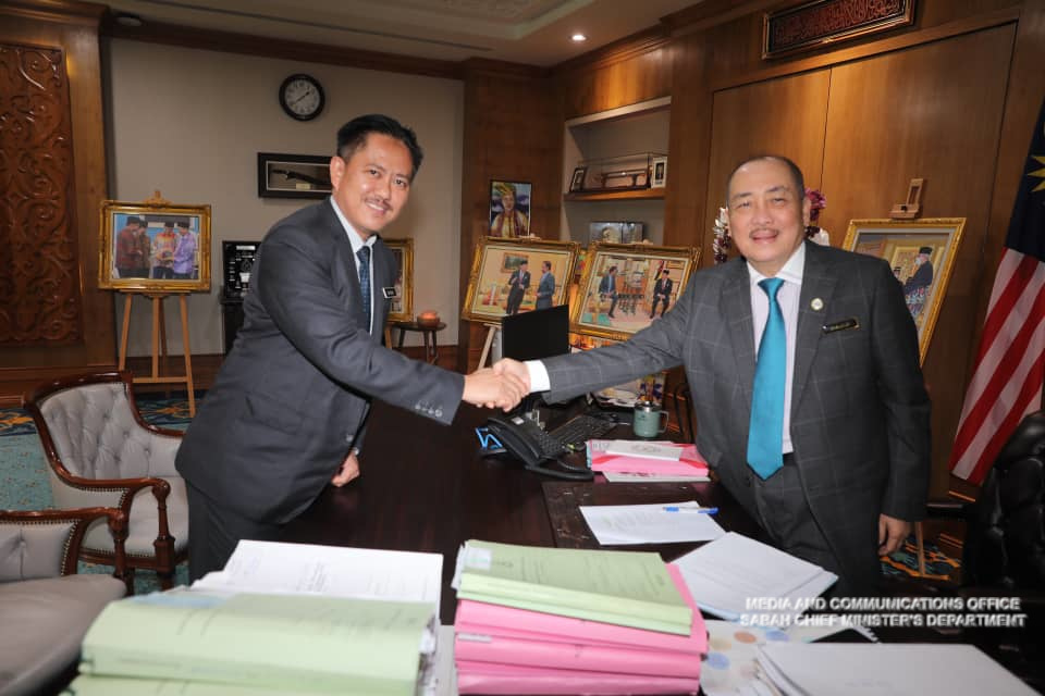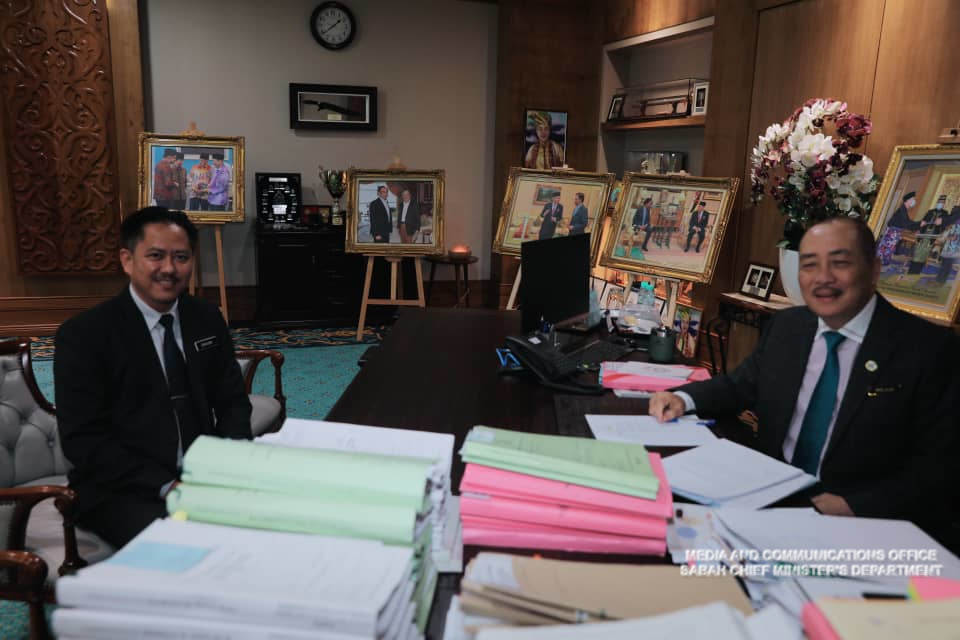Yang Amat Berhormat Ketua Menteri menerima Kunjungan Hormat daripada Ketua Pengarah Perkhidmatan Awam Negeri Sabah, Datuk Zainudin Aman di Pejabat Ketua Menteri Menara Kinabalu