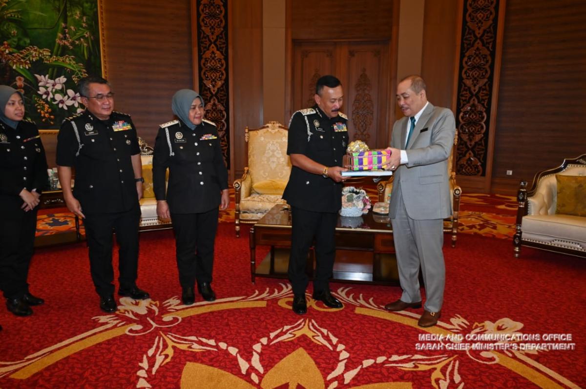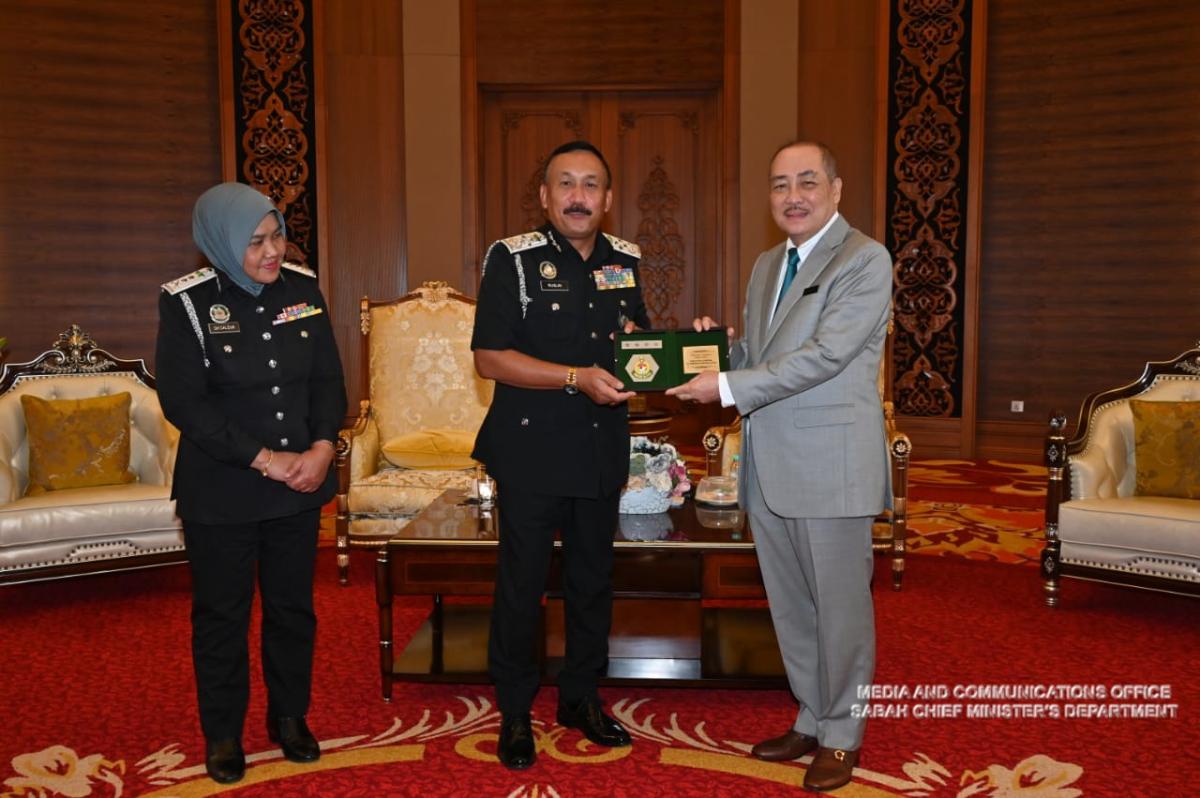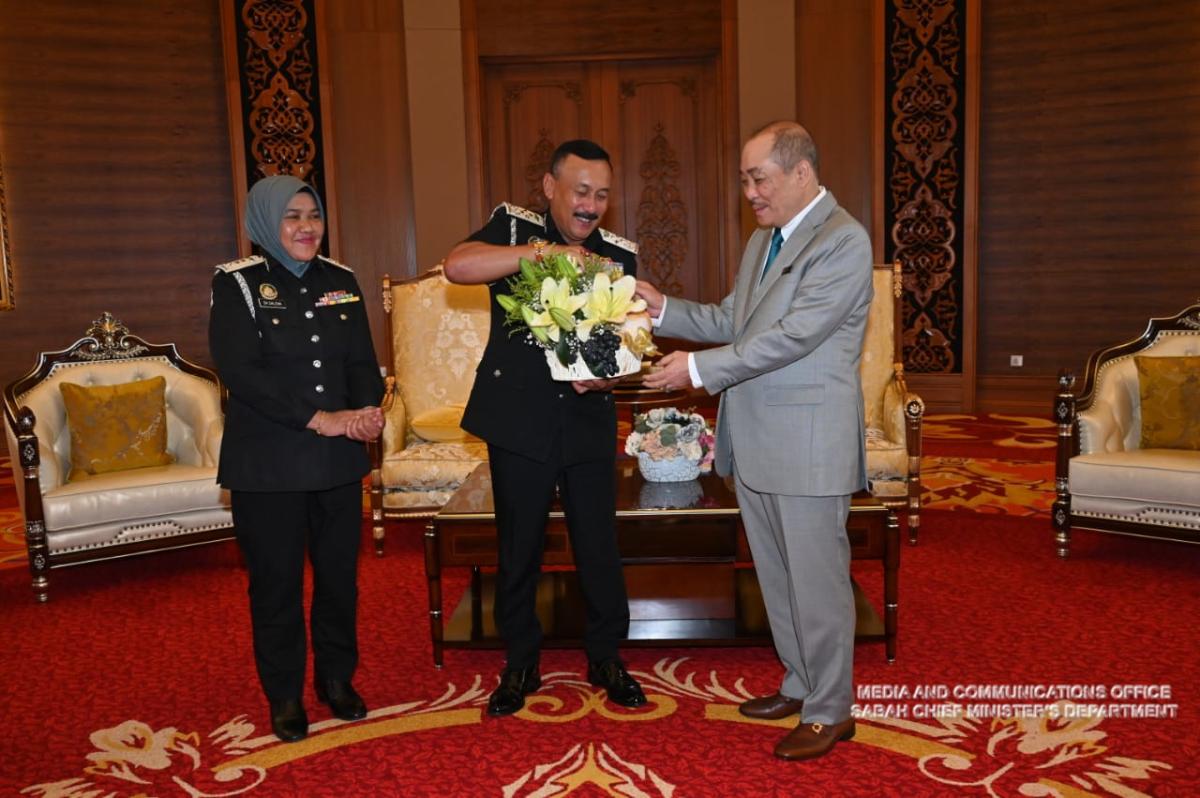 Yang Amat Berhormat Ketua Menteri menerima Kunjungan Hormat daripada Ketua Pengarah Imigresen Malaysia, Yaang Bahagia Dato’ Ruslin bin Jusoh di Menara Kinabalu