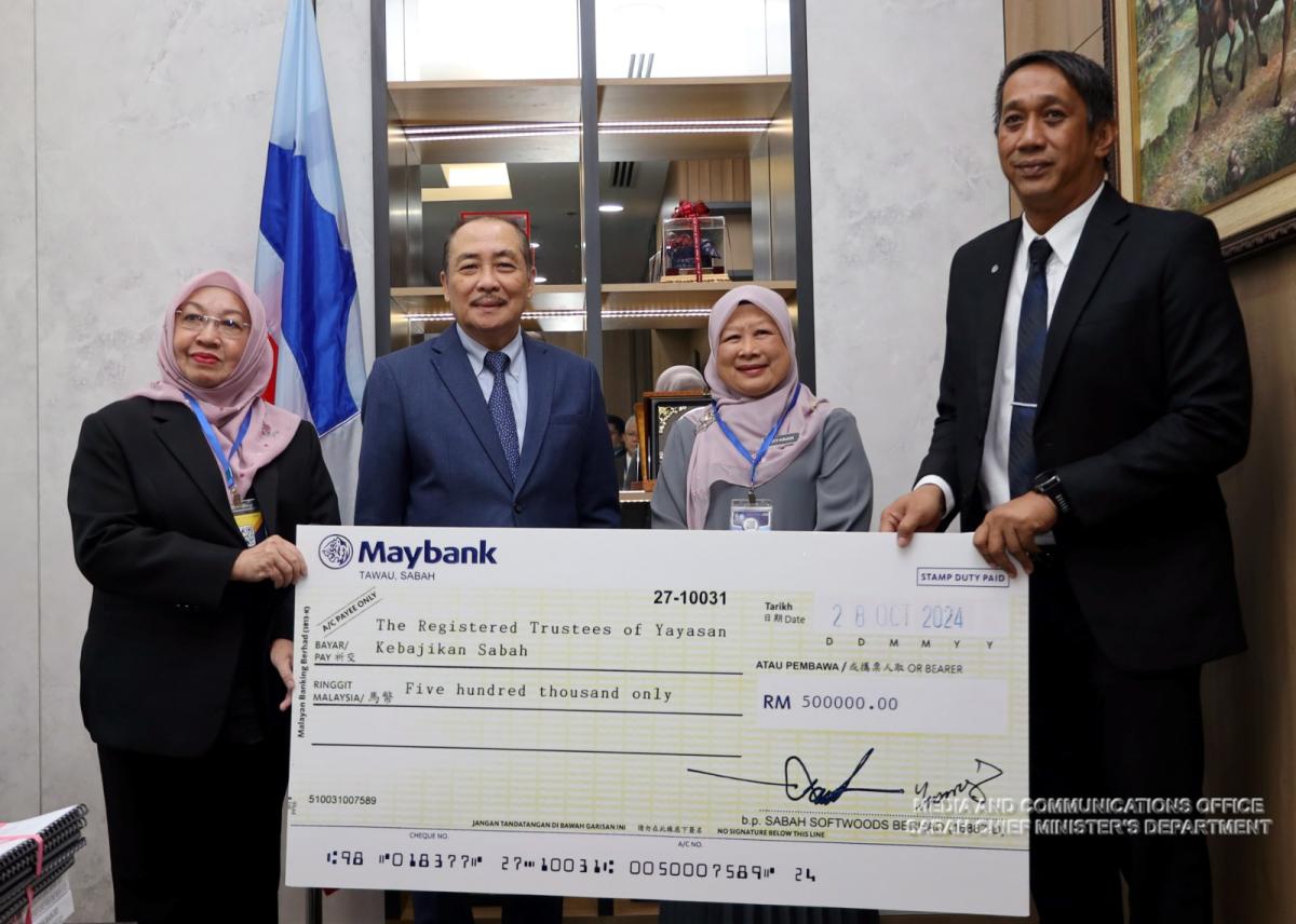 Penyerahan Replika Cek Daripada Pengerusi Softwoods Sabah Bhd kepada Pengarah Yayasan Kebajikan Sabah (YKS)